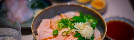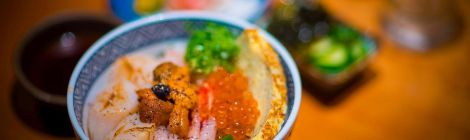 D’excellents donburi aux fruits de mer crues : crabe des neiges, ventrèche de thon et saumon, crevettes, œufs de saumon, oursin… Ambiance typique Japonaise.