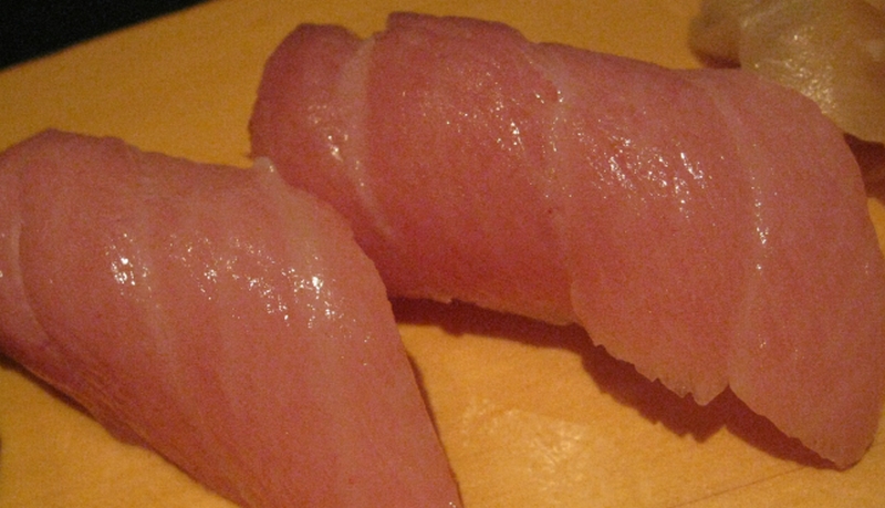 Malheureusement (ou heureusement), ce restaurant a brulé en mi 2010 et est remplacé par un Matsuri (que je n’ai pas encore testé). Les chefs étaient excellents mais là encore, le service déplorable. J’ai souvenir que mon plat était prêt sur le comptoir à 2 m de moi et j’ai dû attendre plus de 30 minutes que la serveuse me l’apporte… Ou bien encore, une autre serveuse qui criait les commandes au chef comme sur le marché le Dimanche matin ! Bien loin du standing et des prix de l’endroit. Bref, ce restaurant avait l’avantage de proposer du o-toro (thon gras) et de la Kirin pression en chope de 50cl. Le menu dégustation comportait aussi des huitres au yuzu (espèce de mandarine Asiatique) ainsi que des uni (sushi aux oursins) et un sashimi(uniquement du poisson, sans riz) d’o-toro.