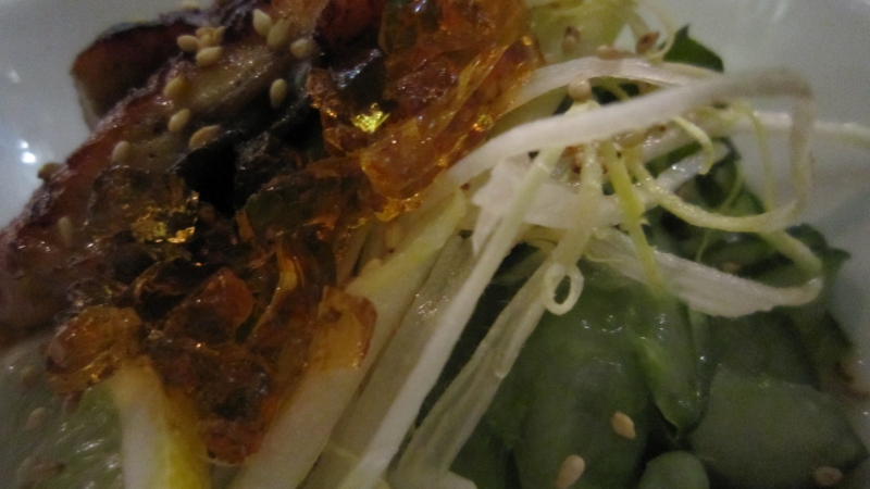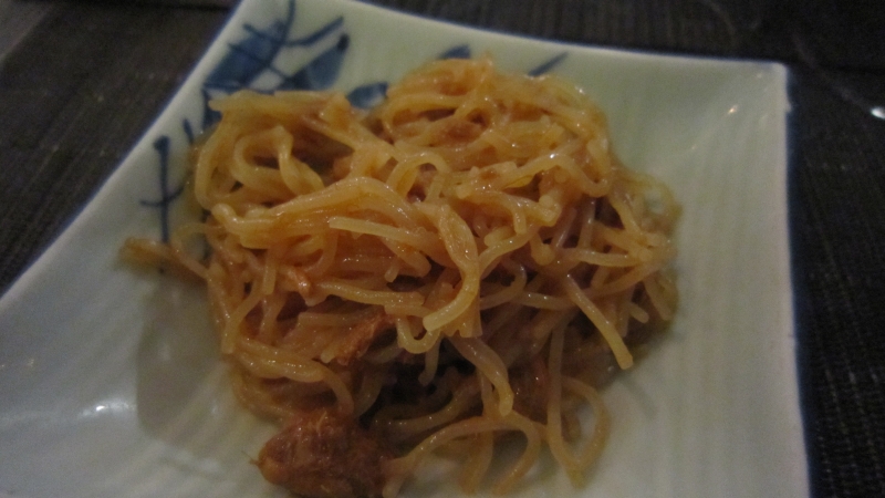 Grand restaurant (par la taille) à Saint Germain de Près, cette adresse en reste pas moins intéressante (il n’y a qu’à voir le nombre de Japonais présents sur place). Là encore, le serveur est taquin, on aime ou on n’aime pas, il n’en reste pas moins efficace. Le menu dégustation est copieux avec des entrées, des gyoza (ravioli Japonais) correctes, un sashimi-maki, de l’anguille ou des crevettes frites en tempura. J’ai trouvé les brochettes mauvaises mais par contre la glace aux haricots rouges est excellente.