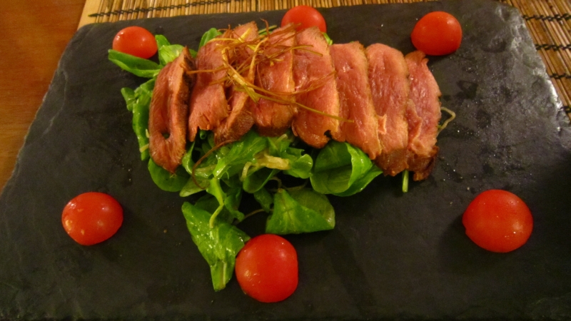 Journée chaude du mois d’août à Montpellier ; j’avais en plus réservé à la salle haute où l’on déguste les repas sur des coussins « à la Japonaise ». Décor exquis mais service un peu rustre par moment, le menu propose un assortiment d’entrée : gyoza, kamo (salade de canard) ou wakamé (salade d’algues). Autre curiosité de la carte, la présence de mouton que l’on trouve qu’à Hokkaido et qu’il est très rare de trouver dans un restaurant Japonais : le Jingiskan (selon la légende, ce serait les soldats de Mongolie de Genghis Kan qui auraient apporté le mouton sur l’ile Nippone). Par contre j’ai été extrêmement déçu par la crêpe Japonaise : mal cuite, pas prédécoupée, avec une sauce sucré qui ressemblait plus à du sirop d’érable qu’à autre chose. Malgré cette faute de gout, ce restaurant reste une excellent adresse sur l’Agglo.