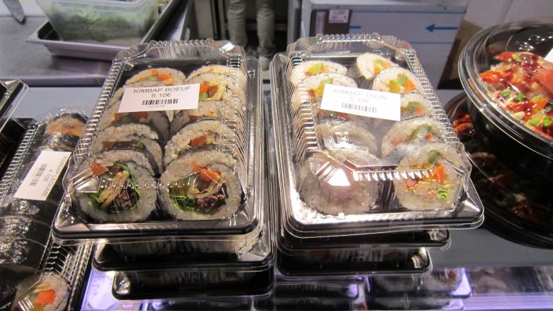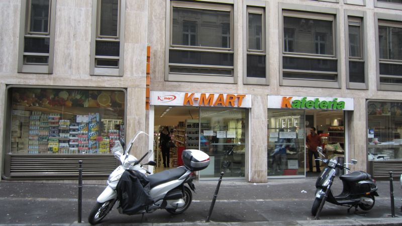 Nouveau venu dans la rue Sainte-Anne, K-Mart s’est développé de façon fulgurante. Au départ, simple supermarché, il se double maintenant d’une boucherie, d’un rayon frais et d’une cantine à midi. Contrairement à Kioko, et plus dans la veine de Ace market, les produits sont plus un mélange Coréen-Japon. Il est à noter que les produits du matin calme sont aussi de très bonne facture. Je trouve qu’en s’agrandissant comme cela, ce commerce à perdu son âme et je me souviens avec nostalgie du temps où il vendait des manga… On reste cependant bien loin des « kombini », supermarchés ouverts 24h/24 au Japon comme Seven-Eleven