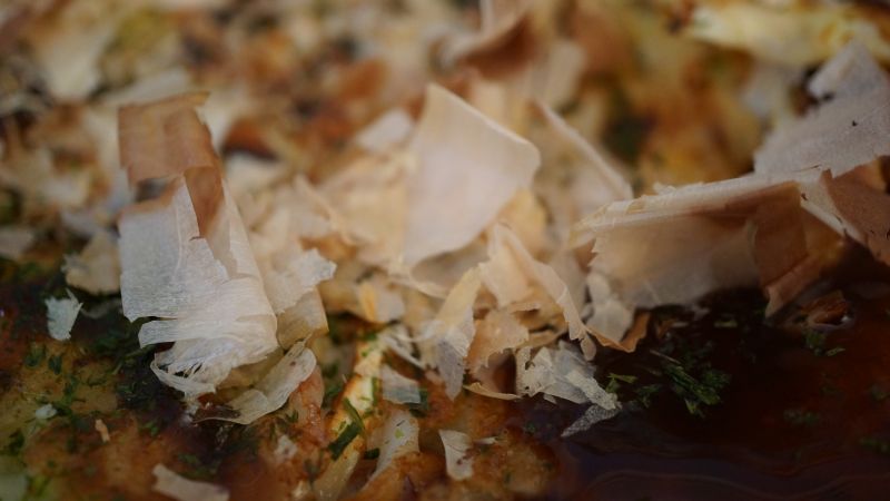 C’est bon avec les petits morceaux de bonite séchée dessus !