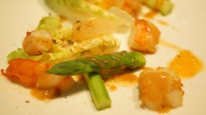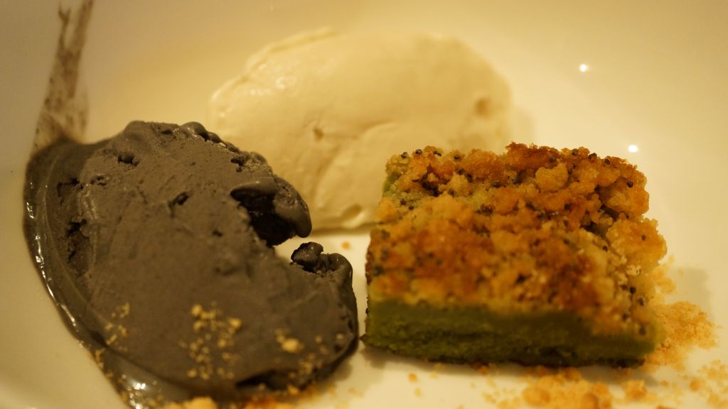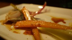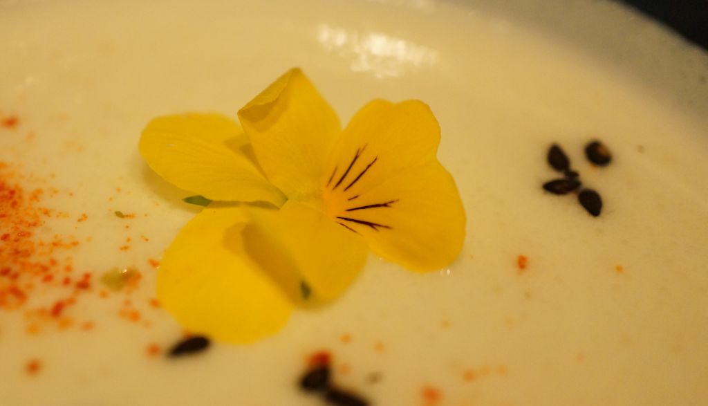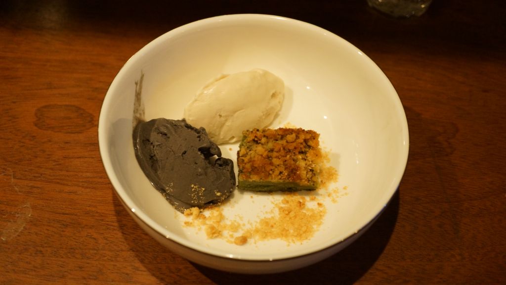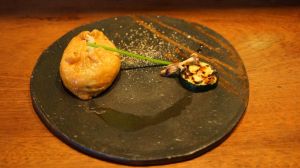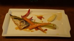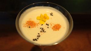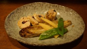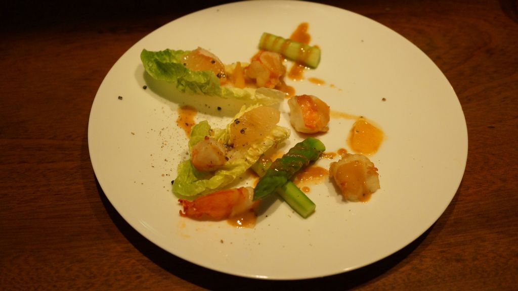 Anciennement Youlin (le prénom de l’ancien chef qui a aussi contribué à Guilo Guilo), le Sakébar est en réalité un des plus anciens restaurants Japonais de Paris (Takara y était installé à l’origine avant de déménager rue Molière) qui est aussi à l’origine de l’excellent Sola. Aujourd’hui il s’agit d’une izakaya. Malheureusement pour le lecteur, je ne bois pas d’alcool en ce moment donc je n’ai pas testé les saké et autres xhisky, mais je vais vous décrire le menu « omakasé » de l’été : Vichyssoise (soupe épaisse faite de purée de pomme de terre et de poireaux avec des oignons, de la crème et du bouillon de poulet) à la moutarde Japonaise (karashi), salade d’agrume aux gambas, inari fourré au risoto de shiitake et d’algues, maquereau au fenouil et à la carotte, et pintade au shiso et à l’umeboshi (prune salée). Comme dessert un gâteau à la glace au sésame noir et blanc. Pour ce qui est du gout, la Vichyssoise et la glace au sésame blanc étaient excellents, par contre la pintade était fade. Bien entendu, les plats sont faits pour être déguster avec du saké, il m’est difficile d’être objectif. Pour la présentation, c’est joli même si la salade n’était pas parfaitement au milieu de l’assiette . Pour le service, impeccable car c’était complet : le serveur Européen a vécu deux et demi au Japon comme… mannequin ! Une expérience sympathique Franco-Japonaise dans un cadre charmant.