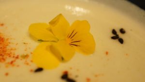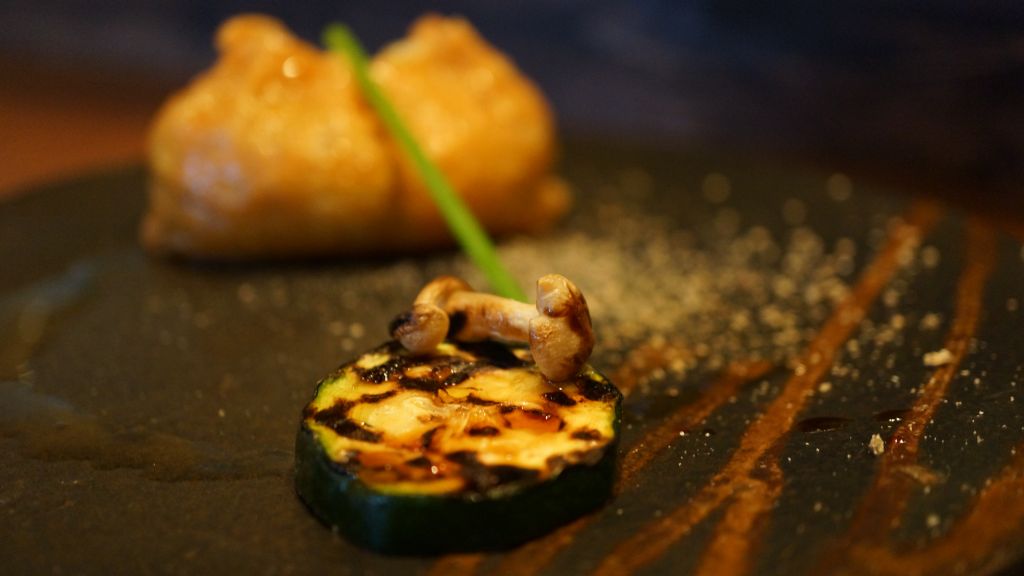 Porte-BaguetteVelouté de tobinanbourg   Amuse-bouche     Magret de canard fumé au hojitcha   AmbianceSardineDétailSaumonSobaBar à l'oseilleEpinardsEffet