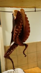 Ce restaurant, contrairement à son petit frère Hama Shin, avait l’air sympathique, à part la patronne qui nous agresse presque car nous n’avions pas réserver ! Ambiance authentique et chaleureuse pour des plats qui semblaient bien bons. A essayer la prochaine fois ! Je n’ai pas pu résister au poulpe comme décor à l’entrée.