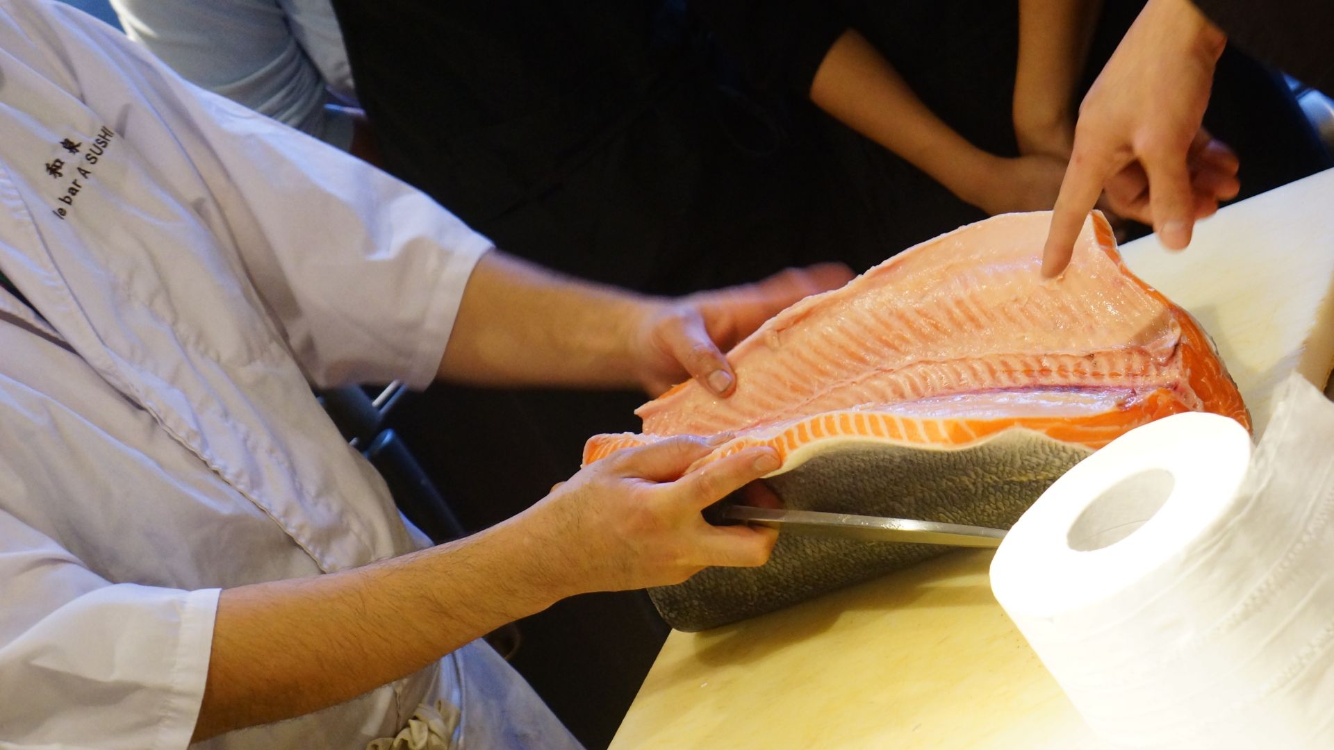 Wasabi, l’excellent magazine sur la gastronomie Japonaise propose des leçons de débutant à expert pour la préparation des sushi dans leurs locaux du 19ème arrondissement, derrière les Buttes Chaumont. Au programme, cuisson du riz, mélange dans un hangiri, découpe du poisson, préparation des poissons bleus (chinchard, maquereau) ou encore de l’omelette Japonaise (tamago-yaki). Une bonne initiation pour vous rendre compte de la difficulté de la coupe du poisson : la lame doit être bien placée et surtout l’incision franche et nette. Des années d’expérience sont nécessaires pour maîtriser toutes les étapes de la préparation des sushi. Le chef, Izumi, est celui du Bar à Sushi dans le 8ème arrondissement à Paris.