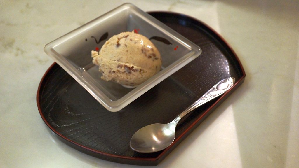 Miyoshi est le genre des restaurant discret devant lequel il est possible de passer des années sans le remarquer (un peu comme Hyotan près des Champs Elysées). Miyoshi est aussi un restaurant familial, c’est pourquoi le nom du restaurant fait référence à la grand mère de la patronne. Miyoshi est enfin une très bonne adresse : leur saumon grillé est divin. J’ai pris un menu avec deux plats car il est vrai que les portions sont petites. Mais la carte est impressionnante : des tempura au sukiyaki, en passant par un menu spécial huitre en hiver !Très bonne glace au haricot rouge.