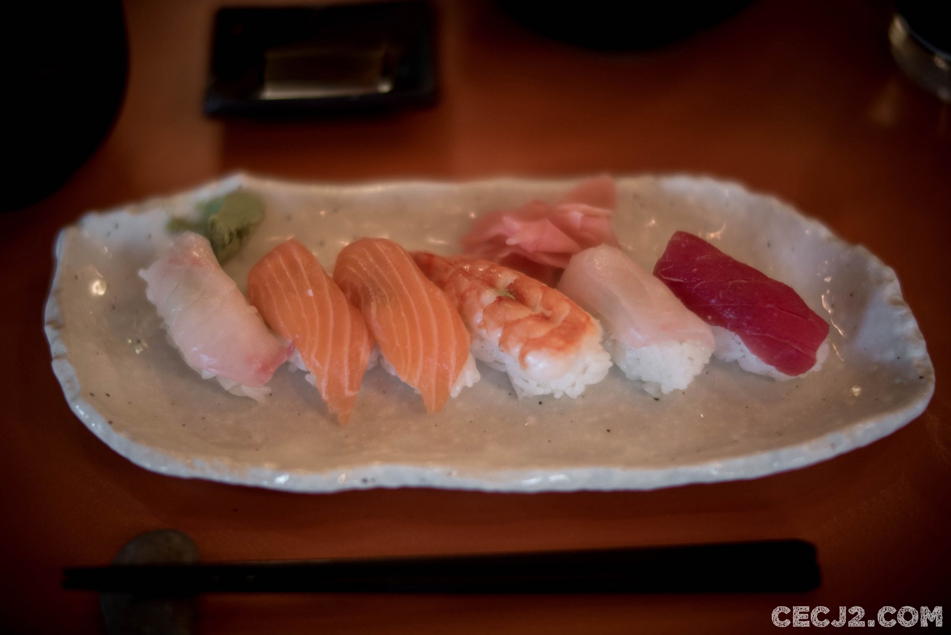 Ce petit restaurant, très lumineux le midi, se loge au cœur du 16ème arrondissement de Paris. La carte est complète avec Sushi, Sashimi, Tempura et bien entendu du O-toro, le fameux ventre du thon rouge, hyper gras et fondant. Service rapide et efficace, un peu froid au début qui se détend pendant le repas. Par contre, la découpe du poisson n’est pas parfaite mais au final, la fraicheur des mets l’emporte sur la technique. Et il y a même une petit touche amusante avec des bols Winnie l’ourson pour le thé. La décoration est très zen avec de nombreux petits objets issus du folklore Japonais comme des masques et des statues de Tanuki, une espèce de blaireau aux pouvoirs de transformation, immortalisé dans le dessin animé du Studio Ghibli, Pompoko. Le restaurant ne dispose que 20 places alors pensez à réserver.