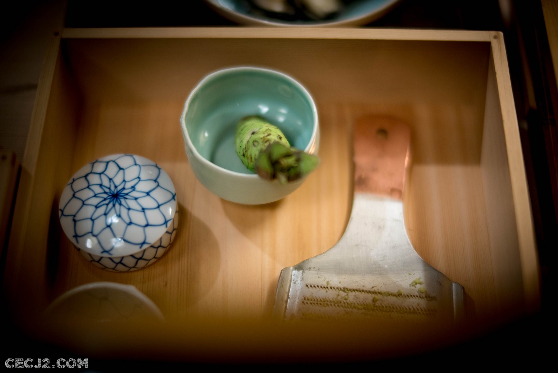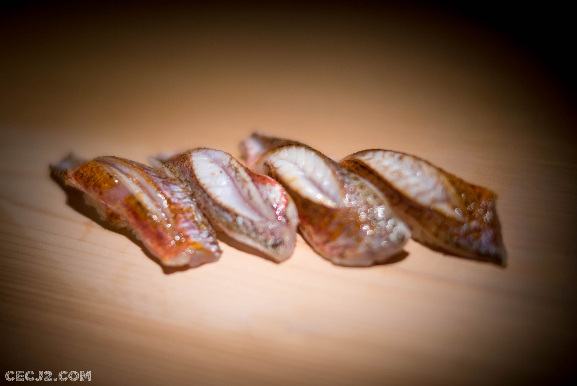 S’il y a bien un lieu les plus excentrés en France, c’est Brest. Perdue au fin de fond de la Bretagne, avec une architecture digne de l’ancienne URSS, des façades grises, un ciel gris, Brest cache pourtant l’un des meilleurs restaurants Nippon de France. Si vous lisez mon blog attentivement, vous savez que j’aime les restaurants authentiques, c’est-à-dire tenu par un Japonais. Or, ici, c’est un Breton qui officie derrière le comptoir pour vous servir une de les plus belles expériences de sushi de ma vie. Comme le dit Xavier Pensec lui-même, « c’est dur le sushi en France ». J’avais eu le même style de remarque avec aussi un grand restaurant de sushi à Marseille, Simple Sushi : les pêcheurs Français ne respectent pas le poisson. Dans l’archipel du Soleil Levant, la technique de préparation s’appelle Ikejime où le poisson est tué en lui plantant une pointe juste à l’arrière de la tête pour l’achever sur le coup, éviter qu’il ne se débatte, ce qui rend la chaire du poisson amer. Pour cela le poisson doit arriver vivant au marché ce qui évite qu’il se noie dans les filets ou meurs d’asphyxie à l’air, ce qui se produit dans la pêche moderne au chalut. Mais, malheureusement, notre itamae se désolait de voir les tempêtes des jours passées qui avaient empêchés les poissons de remonter des profondeur, l’humidité ambiante qui a perturbé la cuisson de son riz, sa nouvelle préparation de awase zu pour le riz qu’il ne trouvait pas parfaite et le faible choix de poisson qu’il avait à nous proposer… Qu’il se rassure, pour moi, l’expérience a été unique. J’adore les gens perfectionnistes et j’y retournerai certainement à un meilleure période de l’année pour découvrir l’étendue de ses talents sur les poissons locaux. Après tout, la Bretagne révèle des secrets comme le loup, la sardine, la dorade… Malgré ces inconvénients, le repas de ce soir était orienté saumon sauvage du Pacifique. Les  pièces étaient uniques : une première légèrement fondante, une seconde aux accent du citron, un autre très beurrée et une dernière cuite au chalumeau, divine. Il faut bien comprendre que ce poisson n’a pas la même couleur que son cousin élevé en captivité : il est orange pâle et surtout bien moins gras. Chaque pièce était unique avec un gout bien marqué. Puis des gambas, des petites rougets entiers, du poulpe, de l’anguille sauvage, de l’ormeau iodé, des œufs de saumon à la sauce soja, du maquereau… Pendant que le chef officie derrière le comptoir, sa femme Mika opère discrètement mais efficacement pour certaines soupes ou les maki. Le chef tempête encore une fois en disant que certains critiques le trouvait trop cher ou qu’ils l’ont critiqué dans son dos. Vu le nombre de pièces qui m’ont été servies et la qualité des poissons, je n’ai pas trouvé ça cher. Il a aussi insisté  pour que nous prenions son wasabi frais en direct de Tsukiji, le marché aux poissons de Tokyo : fraichement râpé, d’une texture parfaite, discret et fort à la fois,  le condiment vert a sublimé le repas. En fait, j’ai compris pourquoi Hinoki est au bout du monde, il y a tellement de caractère dans les sushi de Xavier Pensac qu’il fallait toute la puissance de l’océan pour l’arrêter !