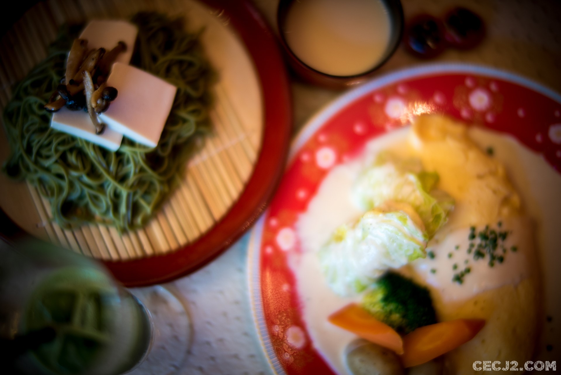Après le succès d’Happa Teï et de ses Takoyaki originaires d’Osaka, Mika a décidé de nous faire découvrir les pâtisseries et les thé de Kyoto. Le lieu est vif et coloré, très kawaii et féminin, cela colle parfaitement avec la carte. Au programme, trois types de thés, le Sencha, le Genmaicha et l’Hojicha. Pour les pâtisseries, il s’agit des grands classiques des desserts Français comme la tarte aux fraises ou les macarons. D’ailleurs arrêtons nous sur ces derniers qui s’appelle désormais le Mochi-Ron où le centre est fourré avec du Mochi, le fameux gâteaux tueur au riz gluant du Nouvel An Japonais. Et oui, il n’y a pas que le Fugu qui puissent être mortel dans l’Archipel. Quand je dis que le métier de blogueur culinaire est dangereux ! Tous les sacrifices que je fais pour vous, Ô lecteurs. Bref revenons à nos macarons. C’est la chef Ueda Sayuri qui a travaillé chez Pierre Hermé qui les réalise. Autant dire qu’elle maîtrise le sujet. Ils sont moins sucrés que chez son homologue Français et donc plus fruités. Quant à la touche de mochi, c’est très… Nippon ! Je ne suis pas spécialiste des desserts donc je vous laisserai juger. Cela vaut à tout les coups le déplacement. Heureusement pour moi, il y avait aussi des plats salés comme des Soba au thé vert trempées dans une sauce au curry ou au tofu par exemple. Enfin, j’ai gardé mon préféré, le Omu-Rice. Je vous vois venir, vous dites « Quoi ! Des Omu comme dans Nausicäa de la Vallée du Vent ? ». Ces insectes géants ressemblant à des cloportes qui défendent la forêt des attaques des Hommes, ont en effet une vague forme en commun. Je vous rassure, ici, il s’agit d’une omelette remplie de riz avec une sauce béchamel. Cela ne vous fait pas rêver ? Et pourtant c’est délicieux. J’avais un peu peur que la sauce soit lourde mais c’est sans compter sur les talents des Japonais qui l’ont rendue aérienne et moelleuse. Après, la création est infinie car on peut l’accompagner de curry, de burgers ou de Tarako ou d’une poche d’œufs de cabillaud. Aujourd’hui c’était du chou farcie au saumon, plutôt bon. Au final, Sazanka est une adresse très originale et innovante, peut-être un peu trop pour moi, mais que je vous conseille les yeux fermés.