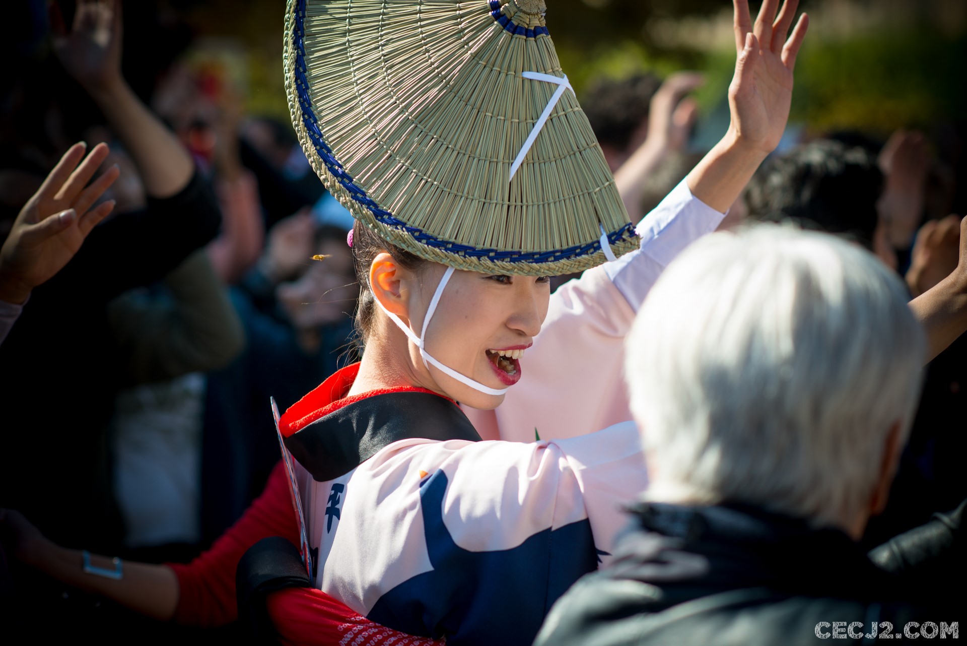 La province d’Awa (安房国 ) est située au centre du Japon, sur la côte Pacifique, à l’Est de Tokyo. Cette région est connue pour ses fruits de mer et ses danses (Awa-Odori signifiant la « danse d’Awa »). Mais cette dernière est aussi nommée la « danse des fous » car elle se caractérise par des pas irréguliers et par un rythme joyeux et dynamique. La légende veut qu’à la fin de la construction du château de Tokushima où l’on distribua aux habitants du saké qui se mirent à danser de façon désordonnée. La fête correspond au O-Bon (お盆), une fête Bouddhique Japonaise, en l’honneur des ancêtres. Chaque troupe de danseurs composées d’hommes et de femme est appelé Ren (連), et les participants suivent en réalité une discipline militaire pour leurs chorégraphies, malgré l’apparent chaos de leurs pas. Sous le son des tambours, flute et shamisen, tout le monde chante une chanson, l’Awa Yoshikono, que je vous laisse écouter plus loin. Il avait aussi des yatai ((屋台), des échoppes de rues traditionnelles, avec des produits d’Atsu-Atsu et de MaBento, où l’on pouvait déguster des takoyaki et des bento.