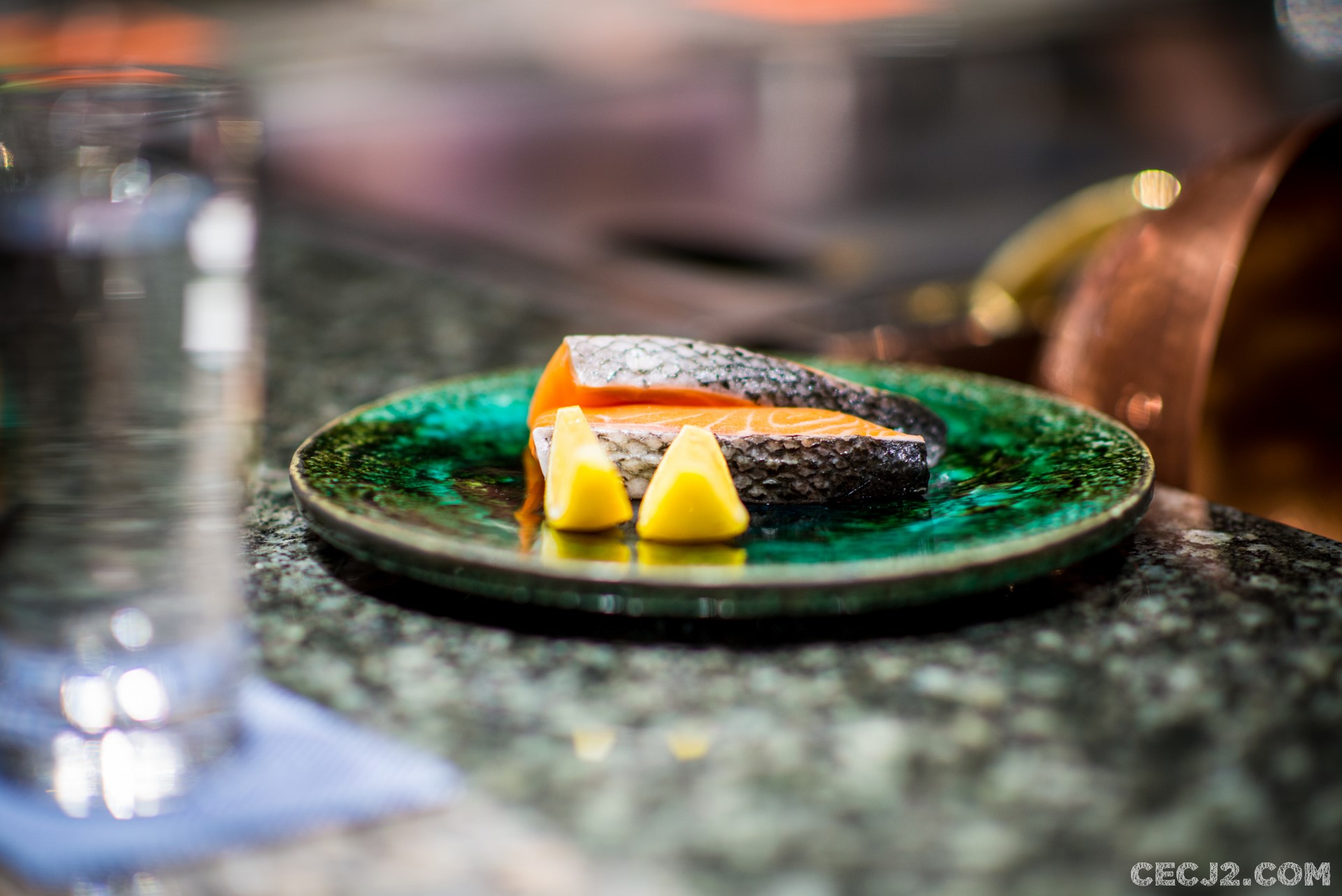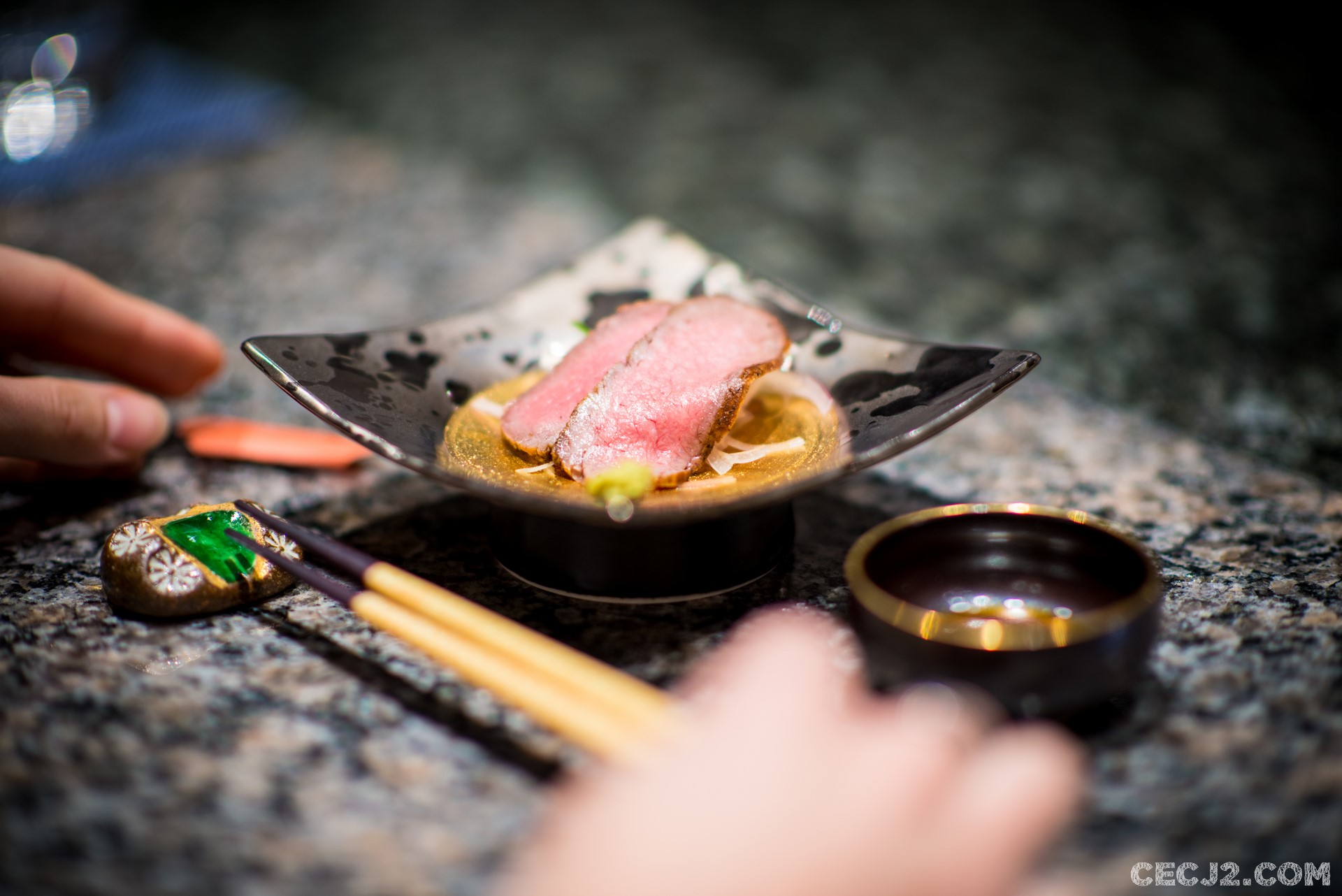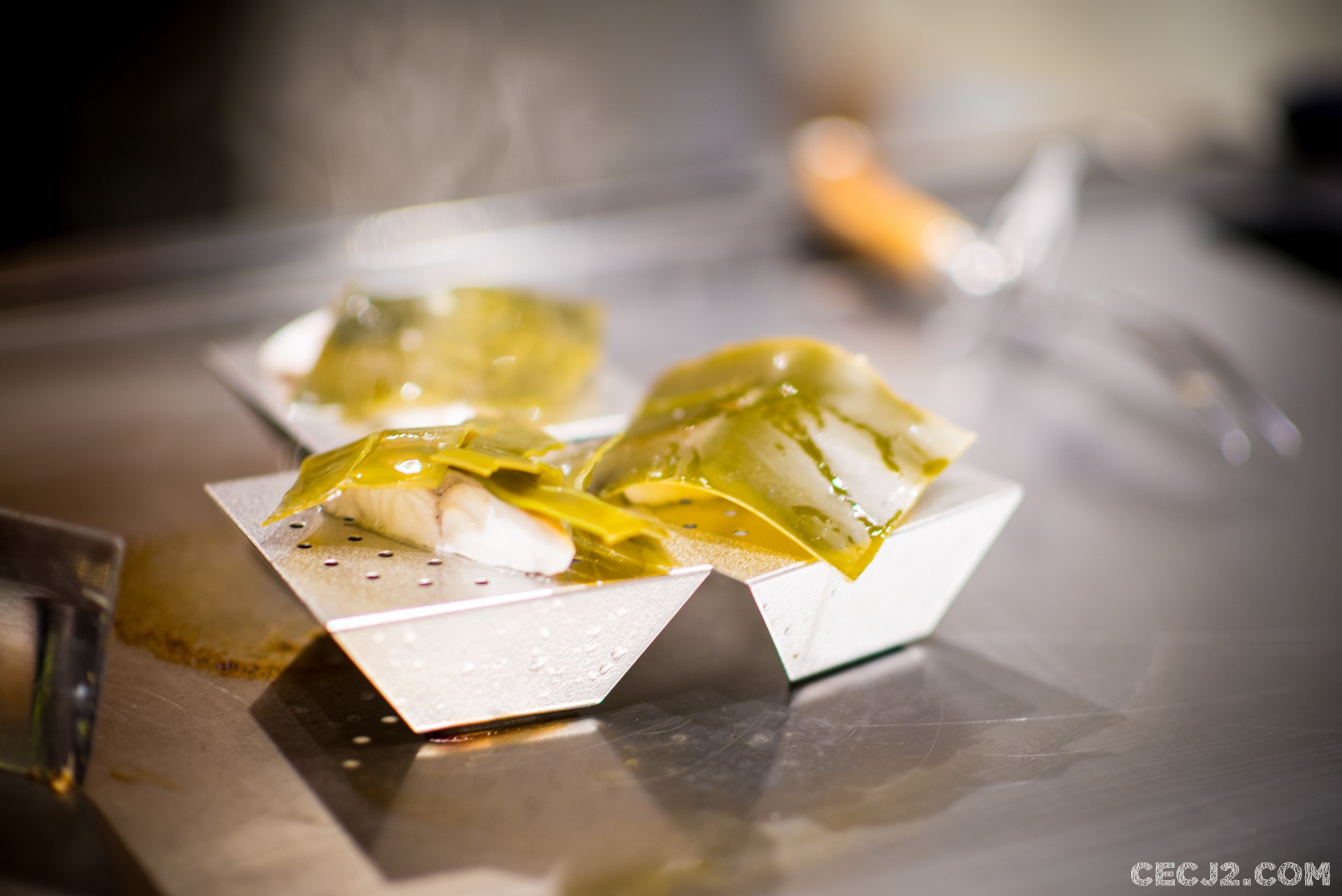 Le Teppanyaki (鉄板焼き) est une technique de cuisson sur une plaque chauffante très appréciée au pays du Soleil Levant. Alors quand j’ai appris, qu’après Sushi Ginza Onodera, une nouvelle adresse de la chaîne allait ouvrir, j’étais très impatient. Teppanyaki Onodera a ouvert juste à côté de l’excellent Tsukizi qui sert des sushi, dans une rue calme du 6ème arrondissement de Paris. Ici, il faut montrer patte blanche pour rentrer car la porte est fermée et il y a un visiophone. Vous passer ensuite dans un vestibule avec un traditionnel Noren, ce rideau suspendu coupé en deux, puis dans une pièce avec 11 places et deux grills où 3 chefs vous accueillent. Ici, ce n’est pas un dîner spectacle et n’attendez pas qu’on vous projette dans la bouche des aliments ! L’endroit est très classique, empreint de luxe à la Japonaise, avec des matières nobles mais simple. Vous pouvez aussi découvrir une espèce de médaille vantant le Wagyu, la fameuse race bovine du Japon, ainsi que des verres en cristal. Avant chaque plat, un des chefs vous présentent des ingrédients ultra-frais : un bar, des carottes violettes, du bœuf Simmental, de la courge butternut, du saumon… Puis vient le balais de la cuisson où chaque aliment cuit à sa façon sur la plaque. J’ai été impressionné par la cuisson du Suzuki où la chaire délicate du poisson blanc est cuite à la vapeur avec une algue Kombu sur une espèce de support où le chef jette un glaçon et laisse le tout mijoter sous une coupelle cuivrée. Très impressionnant. Ensuite, ce dernier est servi avec une moule, un consommé et du Shiso rouge. La chaire du poisson était mi cuite et tendre, une vraie réussite. Un petit amuse-bouche au Wagyu, pas trop gras, avec une pointe de Wasabi et une sauce au Ponzu, délicat et simple. Viennent ensuite la viande rouge de Suisse et les légumes : vous en choisissez deux et la cuisson de votre viande. Ce qui m’a le plus étonné c’est que les légumes sont presque « brutes », ils sont juste coupés et passés sur le grill. Sous cette apparente simplicité, se cache en réalité l’art et la maîtrise du chef Japonais qui veut vous faire déguster des aliments sous leur forme la plus authentique possible pour garder leurs vitamines et leurs saveurs. Enfin, le riz : que serait un repas Nippon sans ce précieux aliment ? Il est servi avec de l’ail, des oignons et des œufs, en cuisant doucement à la manière d’une Okonomiyaki, la fameuse crêpe d’Osaka. Servi dans un bol doré, avec des légumes marinés et un bol de soupe Miso très puissant. Pour conclure ce repas pantagruélique, un excellent dessert (et vous le savez, je n’aime pas les desserts de l’archipel), un Monaka (最中) qui ressemble à une espèce de burger dans lequel on met des Azuki (pâte aux haricots rouges), heureusement agrémenté de chantilly et de glace à la vanille. D’ailleurs, j’ai adoré la vaisselle composée de céramiques et de poteries tout plus élégantes les unes que les autres. Le prix n’est pas exagéré quand à la qualité des plats : 45€. Mais si vous voulez goûter du Wagyu, l’addition passe à 80€ à midi et avec du foie gras le soir à 95€ et 150€. Très cher. Mais c’est le prix de ce petit morceau du Japon en plein Paris.