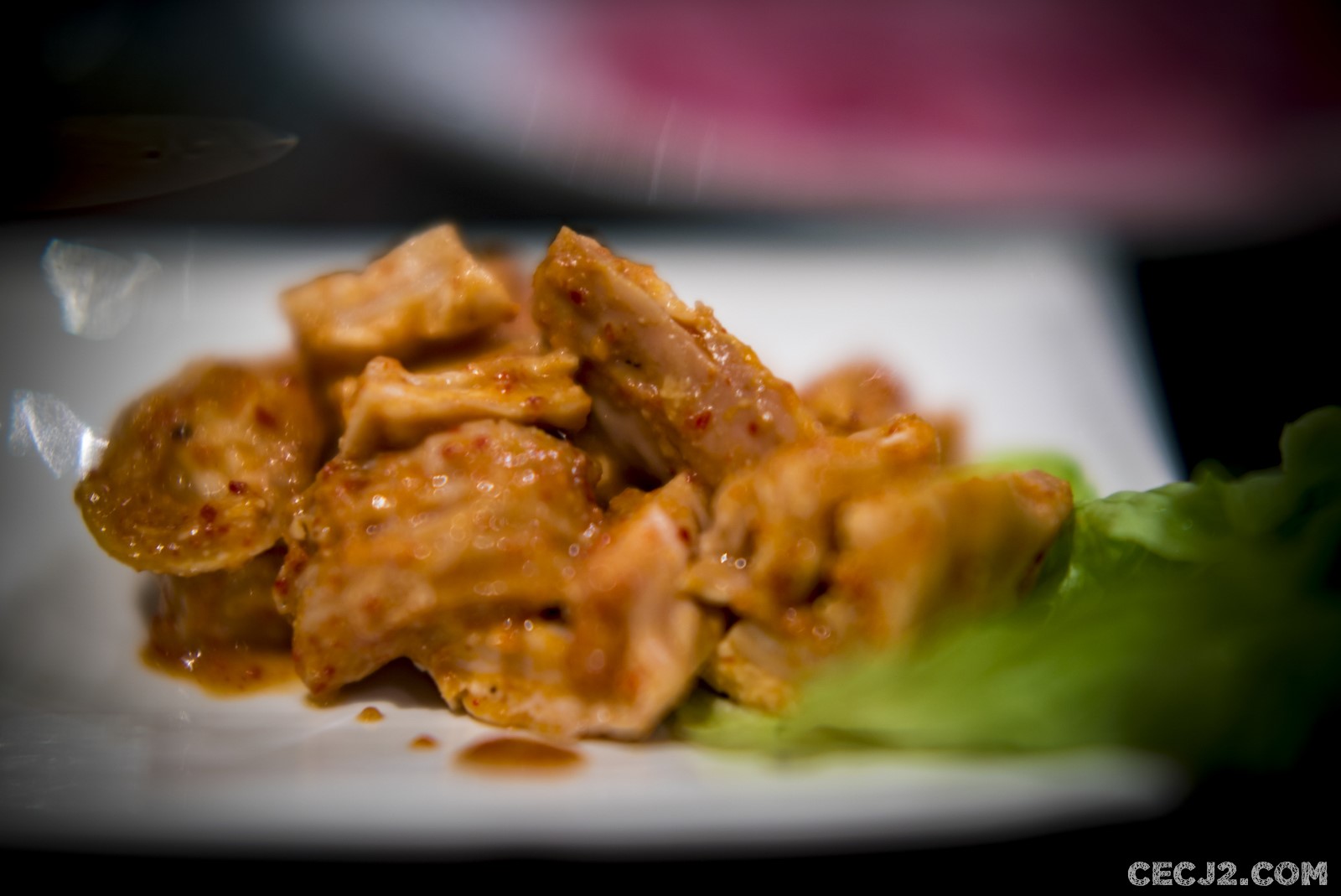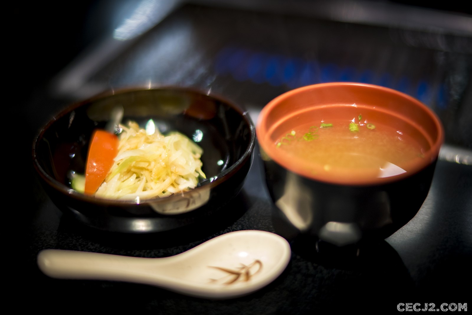 De grands auvents en aluminium brossé,  de la bière Ashahi à la pression, des Japonais entrain  de déguster un barbecue… Pas de doute, Matchan est une adresse authentique. Ici, la spécialité est donc la grillade à la Japonaise. La viande est coupé de façon épaisse ce qui lui permet de rester bleue en son centre et de garder ses saveurs. Entrecôte, basse côte, faux-filet : le bœuf est à l’honneur. Il y a aussi de la poitrine de porc au miso, vraiment très bonne, ou encore des intestins ou de la langue de bœuf au sel. Il y a aussi des légumes comme du maïs, des poireaux, des poivrons ou des oignons à griller. En accompagnement, vous pouvez prendre du riz blanc mais aussi un onigiri en bouillon ou du kuppa, une espèce de soupe de poulet au riz. Tout est très bon et vous assure un aller direct pour le Japon. Mais j’ai trouvé les prix un peu excessif, même pour le quartier. Le menu est à 42€ et j’avais vraiment faim en sortant ! Malgré tout, je vous conseille d’y aller même si mon barbecue préféré reste Jipangue.