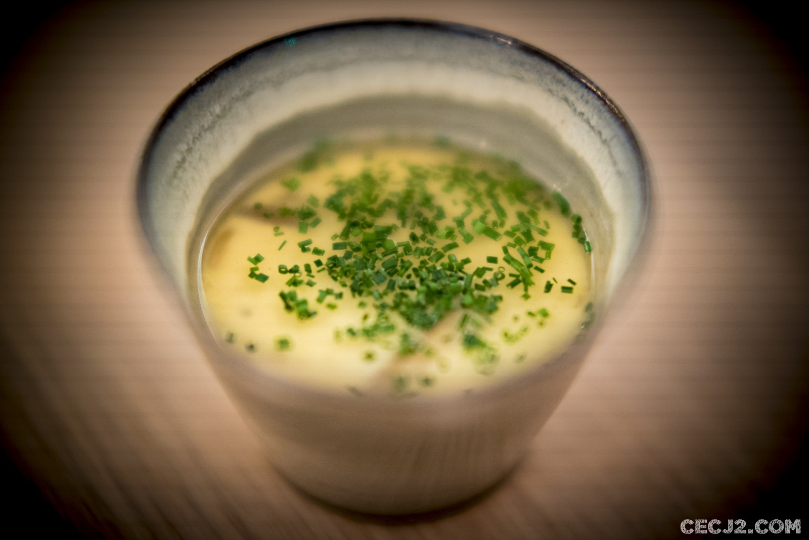 La nouvelle adresse de Youlin Ly, la La Maison du Saké, vous propose de délicieux petits plats à déguster avec les meilleurs saké. Ce qui suivent mon blog le savent déjà : je ne bois pas d’alcool. Alors pourquoi allé dans une Izakaya ? Parce que justement les assiettes proposées y sont souvent originales, mêlant modernité et tradition. Au programme, un Chawanmushi (un flan chaud Japonais), un Tonkatsu Aramiso (porc pané au Miso rouge), des encornets grillé sauce parmesan (mon préféré du repas), un Maguro Zuke (du thon rouge mariné) ou un maquereau Ichiyaboshi (littéralement « séché une nuit » qui est ensuite grillé). Tout est très bon mais la clientèle du lieu est vraiment arrogante et gâche le plaisir… Cela reste cher, de 4 à 12€ pour les entrées, et de 8 à 25€ pour les plats, l’addition peut vite monter à 50€ par personne avec de l’alcool. Malgré tout, je ne regrette pas cette expérience dans un très beau lieu avec un magnifique pin bonsaï géant.