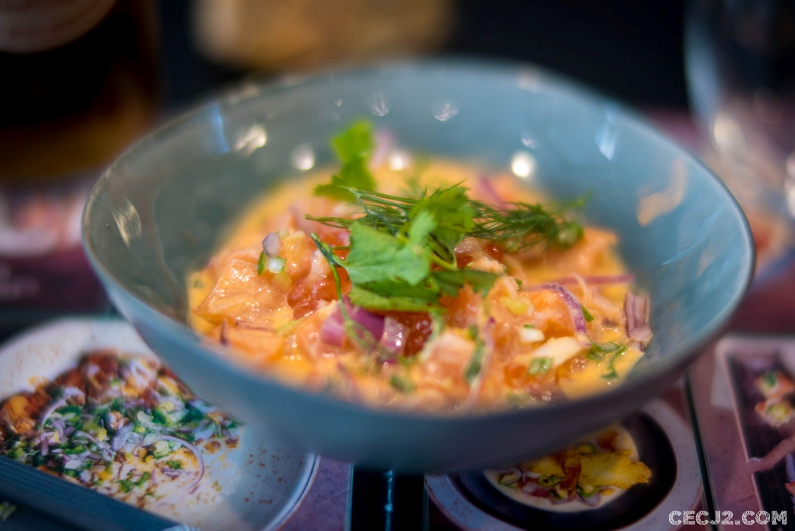 Je tiens à ce que les choses soient claires : j’ai été invité par Côté Sushi pour tester leur nouvelle carte. J’ai prévenu tout de suite que si je n’aimais pas, je le dirais ! Mais c’était très bon. Ne connaissant pas bien la cuisine Péruvienne, je suis allé chez El Pulpo, une cantine très agréable, et chez Matsuhisa, la nouvelle adresse luxueuse du chef Nobu qui a inventé cette cuisine mi-Japonaise, mi-Péruvienne, la cuisine Nikkei qui est adaptée chez Côté Sushi. Et pourtant, Côté Sushi n’est pas nouveau car la franchise existe depuis 2008 et propose une pêche responsable avec des produits de qualité. Leur grand classique c’est le Tiradito Mix avec du saumon, de la daurade et une sauce mentholée très fraiche. Il y a aussi le Samba, une espèce de rouleau Californien, Naranja au saumon et au coriandre que j’ai dégusté, et Blanca à la daurade. J’ai aussi dégusté un intéressent saumon Teriyaki : un plat que je qualifierai de « girly », un peu trop sucré à mon avis, mais la pointe de piment, le coriandre et le moelleux m’ont bien plu. Enfin, le grand classique, le Ceviche, le Sashimi de saumon Péruvien, avec une sauce légèrement astringente, un peu amer, un peu citronné. plutôt bon. Le plat qui m’a le plus surpris c’est la salade de chou : bien souvent bâclée, ici elle prend des accents de sésame et de douceur bien agréable. J’ai noté l’effort de servir les plats dans des bols raffinés et le soin apporté à la décoration avec des alcools du Pérou et du Japon, des piments et du maïs. Au final, Côté Sushi m’a plus que surpris. J’ai passé un bon moment culinaire et, pour ceux (dont je fais partie) qui ne peuvent pas aller chez Nobu tous les jours, c’est une très bonne alternative.
