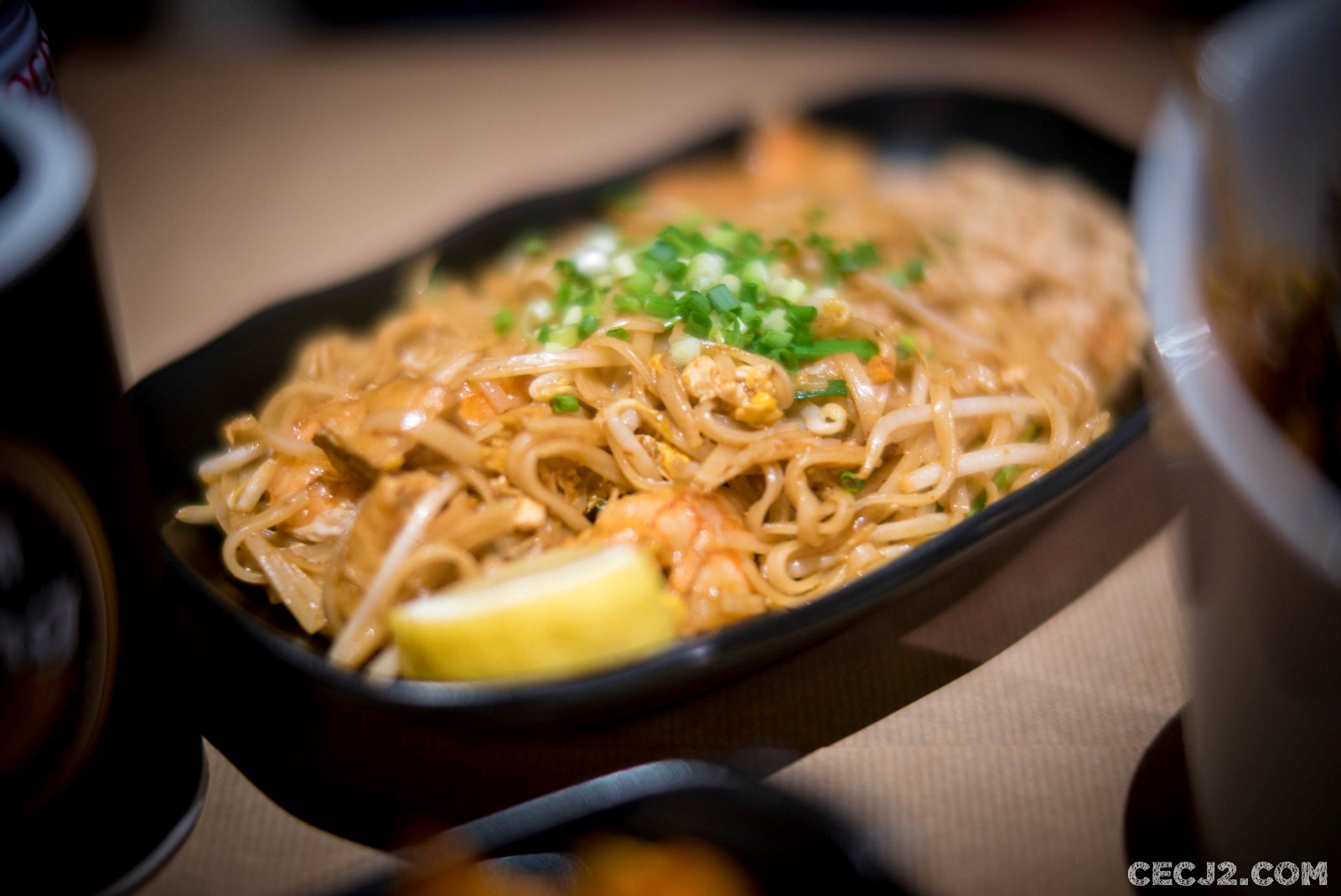 Le Ramen Burger est une invention de Keizo Shimamoto qui a su mélanger ses origines Japonaises et Américaine pour créer cet hybride. Génie ou fraudeur, je vous laisse décider. Mais il faut quand même admettre qu’il faut du talent pour remplacer le pain par des Ramen, ces nouilles du pays du Soleil Levant, à la place du bun. Chez W For Wok, celles-ci sont croquantes et la mise en forme ressemble parfaitement à un pain. Bluffant. Entre deux, il y a une couche de salade que j’imagine être de la roquette, un bon burger épais et cuit saignant, et des oignons marinés dans une sauce au vin. L’ensemble est cohérent et bon. J’ai aussi bien aimé les frites remplacés par des chips de patate douce. La recette originale du Ramen Burger contenait plus d’ingrédients Japonais comme de la sauce soja mijotée dans un bouillon à base de Dashi. Cette version, plus Française, m’a pourtant bien plu et mérite un détour. Mais attention, quantités limités : seulement 20 Ramen Burger par jour ! W For Wok propose aussi des plats cuits au Wok, cette casserole Chinoise à tout faire, comme de bons Pad Thaï par exemple.