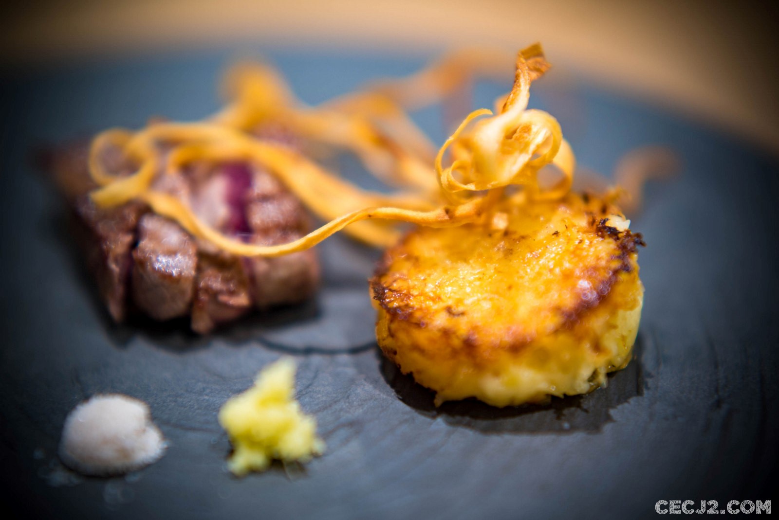 Ken Kawasaki est une nouvelle adresse qui a ouvert il y a une semaine au pied de Montmartre. Et pourtant, malgré l’extrême nouveauté de ce restaurant, la perfection est déjà au rendez-vous. Je pense que ce lieu ira très loin car je n’ai que rarement vu des mélanges aussi audacieux, fonctionnant aussi remarquablement bien. Le chef est de Nara, une des premières capitales du Japon, avant Kyoto, et qui est connue pour sa spiritualité et ses daims en liberté. La grande spécialité culinaire, le Kaki-Noha Zushi (柿の葉寿司), est un cousin du sushi pressé mais où le poisson est conservé dans une feuille de kaki. Chez Ken Kawasaki, il n’y a pas (encore) ce plat puisqu’il s’agit d’un restaurant Français, mais vous pourrez déguster en amuse-bouche un Nara-Zuke (粕漬け). Il s’agit d’une courge fermentée à la Nippone, qui est servie ici dans un petit sandwich avec du pâté de porc. Très frais et croquant. Puis, vient le pain maison avec un huile d’olive Toscane, un peu trop amer à mon goût, avec du jus de Yuzu. Très bon. Ensuite, l’entré du jour était un jaune d’œuf cuit à 70°C, avec de l’asperge blanche, des Shiitaké, de l’Enoki et une sauce Kimizu (un sabayon à base de cassonade, de crème et de Shiromiso). Douceur, volupté de l’œuf sur la langue. Enoki légèrement fumé. Asperge croquante. Une réussite. Puis, une soupe de gingembre, aérienne, piquante et pleine d’énergie. Il y avait après au choix deux plats principaux parmi trois. Le premier était un lieu jaune à la vapeur, merveilleusement cuit (presque aussi cru qu’un Sashimi, mais quand même cuit uniformément puisqu’il a été mariné), avec sa purée de choux, son coulis de coriandre et ses légumes verts. Mais ce sont les feuilles de capucine, le chou déshydraté, la fleur de courge qui m’ont le plus surpris par leur croquant et leur fraîcheur. Le second fut un bœuf au sel de haute mer, avec du Wasabi fraîchement râpé, un sublime gratin de pommes de terre, du salsifis frits. La viande était très tendre, fondante, presque comme du beurre. Le troisième était un agneau mijoté avec de la sucrine amer et du sarrasin qui apporte un goût torréfié. N’aimant pas le sarrasin, je n’ai pas apprécié ce plat mais l’agneau était divinement cuit. Pour finir, le dessert : une étonnante glace de poivrons rouges avec des cerises fraîches, une mousse d’olive noire et son crumble. Je n’ai pas de mots pour décrire ce mélange. Cela résume tout le talent créatif de Ken Kawasaki qui apporte du sucré dans le salé, du salé dans le sucré, réalise des associations de saveurs improbables, avec une maîtrise déroutante. Souvent ce genre de mélange semble artificiel, surfait ; mais ici c’est naturel. Il y avait aussi des mignardises : un cannelé au thé jeune Shincha, un macaron noir Take-sumi et sa ganache au chocolat-abricot et Ume, son céleri rave confit, et son cheese cake pointe de sel. Sublime. Et je vous rappelle que je n’aime pas spécialement les desserts. Pour conclure, Ken Kawasaki a su me conquérir avec sa parfaite maîtrise des cuisines Japonaises et Françaises et surtout par son talent pour créer de nouvelles associations gustatives. Un grand restaurant en devenir. Comptez 30€ à midi et entre 45 et 70€ le soir.
