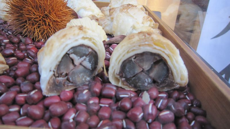 A deux pas du temple Kiyomizu-dera, il y a une longue rue piétonne avec des boutiques de céramique, de souvenirs et autres yatsuhashi (Confiserie fabriquée à partir de pâte de riz et de cannelle, généralement sous forme triangulaire), vous pourrez aussi déguster des… marrons ! Ces derniers sont à déguster chauds dans une espèce de pâte pour un repas simple autour du thé par ce frais mois de novembre !