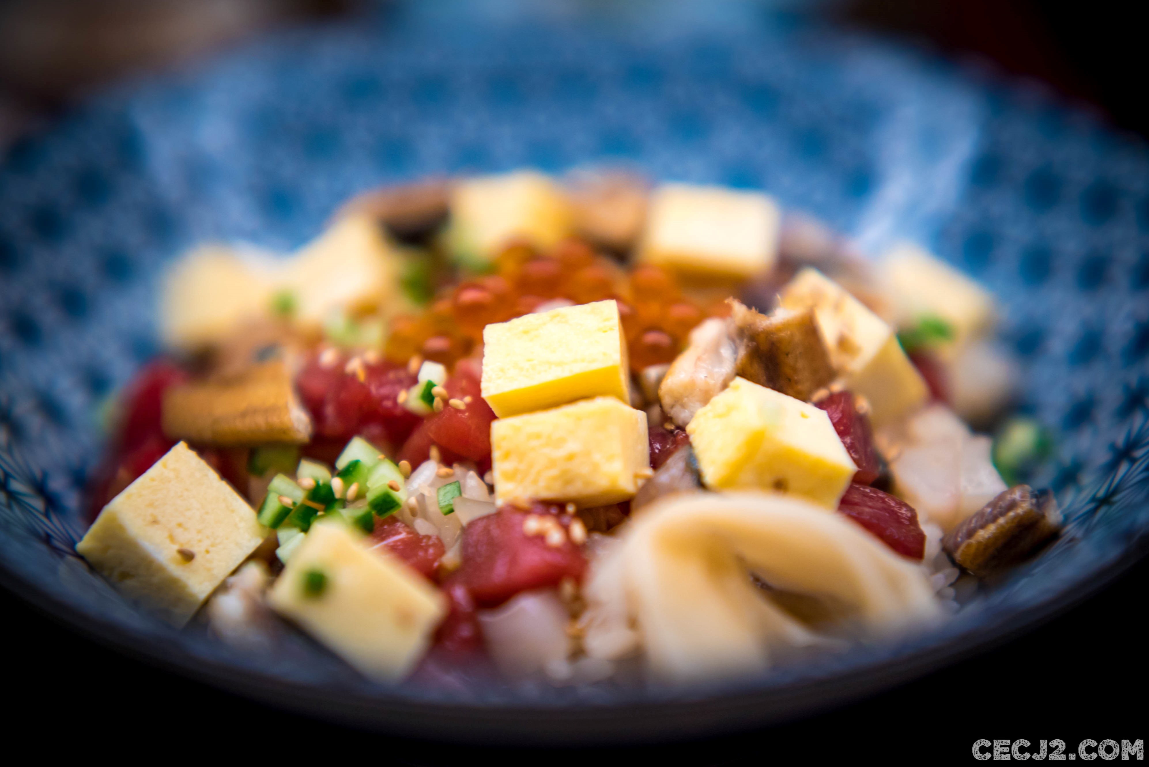Sushi Ginza Onodera est, sans conteste, la meilleure adresse de Paris pour déguster des sushi tel que vous pourriez le faire au Japon. Mais il y a un problème de taille : le prix. Dépenser jusqu’à 200€ par personne peut en refroidir plus d’un, même pour une grande occasion. Heureusement, et les Japonais sont de fins businessman, vous pouvez essayer leur chirashi. Où est l’arnaque me demande déjà certains ? Tout simplement parce que le chirashi est un plat à la base composé des parures des poissons, entendez les chutes et les morceaux dont on ne peut pas faire des sushi. Et vous ne serez pas au rez-de-chaussée mais dans un magnifique cave voutée. Ne vous inquiétez pas, le luxe est aussi présent et surtout, vous serez servis vite et pour un prix imbattable de 36€. Alors qu’avez-vous pour ce prix ? Deux petites entrées : une délicieuse escabèche et un chawanmushi, un flan à la Japonaise, le chirashi bien entendu, du thé grillé et un petit dessert. Notre plat est composé d’un riz cuit parfaitement, un peu « al dente », recouvert d’une sauce soja maison et petits cubes de poisson : thon rouge, anguille, daurade, maquereau… Mais ce que j’ai le plus retenu ce sont l’omelette et surtout le calamar fondant. D’ailleurs à ce propos, signe que nous sommes dans une grande maison, à notre arrivée, la serveuse habillée dans un superbe kimono, nous a demandé si nous voulions du calamar car nous avions dit il y a deux ans et demi que nous n’aimions pas ça… Heureusement, nos gouts ont changé mais cela fait toujours plaisir qu’on garde une trace de votre passage. Attention tout de même a bien appeler pour réserver car le chirashi n’est pas disponible tous les jours, et que pour le déjeuner. Ce jour là, j’ai eu la chance que le chef de Ginza, Akifumi Sakagami, était présent, avec le chef de Paris, Takeshi Morooka. Vous passerez un moment assez inoubliable.