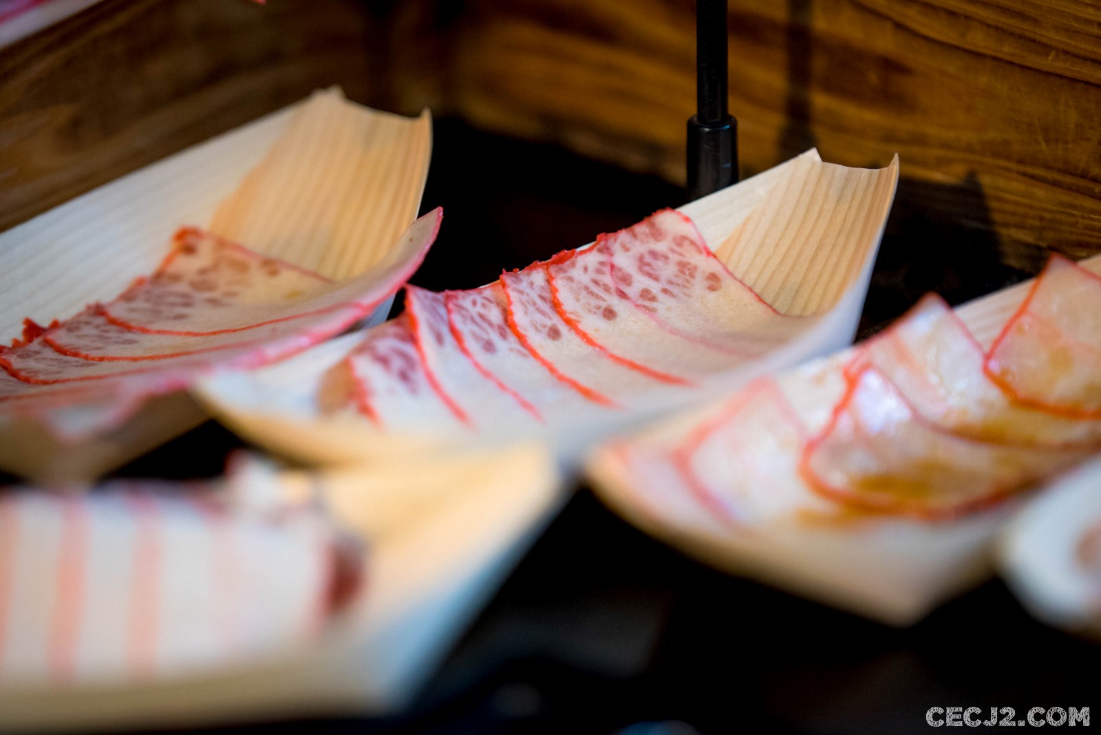 Le « bacon » de Baleine est en réalité la couche hypodermique qui protège les cétacés du froid. Elle est riche en Oméga-3 et en vitamine D. Niveau goût ce n’est pas terrible, froid et un peu gras, mais il fallait tester ce dérivé des mammifères marins, sans juger, car il s’agit d’une tradition au Japon (tout comme en Norvège ou en Islande). Il s’agit d’Unesu 畝須 (peau, blanc et viande près des sillons des rorquals) qui est transformé en « bacon ».