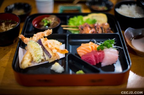 Encore un restaurant rue Sainte Anne, me direz-vous ? Et oui, je n’ai pas encore tout essayé, et heureusement ! Je suis passé de nombreuses fois devant cette échoppe et j’admets qu’elle est peu accueillante de l’extérieur. Mais rassurez-vous, une fois à l’intérieur, propreté et fraicheur sont au rendez-vous. J’ai testé le midi et le soir, et le rapport qualité/prix est au rendez-vous. La carte des brochettes est bien fournie : œufs de caille, poulet, porc, foie, cœur, poireaux, canard, champignons, peau de poulet… Il y a même des sashimi, avec son trio de poisson thon rouge, saumon et daurade, très frais. Le midi, je me suis laissé séduire par des Tempura… d’huitres ! Spécial tout de même mais après tout, je ne fais pas ce blog pour toujours prendre la même chose. Le soir, il y a un bento avec des Tempura plus classique (crevette, aubergines, courgette), un sashimi, un bœuf mijoté et bien sur, des yakitori. Dernier point pour les amateurs de bière : il y a de la Yebisu à la carte ! C’est toujours très bon d’années en années et cela fait plaisir. Le chef du soir est vraiment truculent et c’est même laissé prendre en photo, une très bonne adresse du « mini-Tokyo » Parisien.