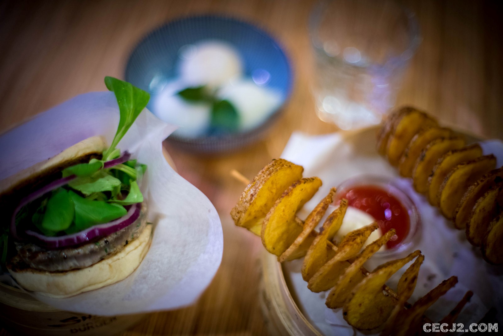 Shiso Burger est une chaîne de restaurant qui propose de mélanger la cuisine Asiatique et les burgers. Vous le savez, le Shiso est une plante aromatique souvent utilisée dans la cuisine Japonaise et c’est pourquoi j’ai décidé de vous en parler aujourd’hui. Il en existe deux principales formes : une verte et une violette. Son goût reconnaissable entre tous, herbacé et acidulé, diront certains mais ce n’est pas assez pour décrire la puissance de cette herbe. Ici, cependant, nous sommes très loin de celles que l’on peut déguster au Japon. Et oui, il existe de nombreuses qualités… Pour revenir au burger du jour, il s’agit d’un thon mi cuit avec des petits oignons et de la mâche. Malgré un goût assez fort du poisson, j’ai bien aimé. Les frites, à mi-chemin des chips, sont vraiment impressionnantes, toutes torsadées. Il y avait bien des boissons qui avaient l’air tentantes mais je n’avais plus assez faim ce soir là. Ambiance colorée avec des LEDs partout, violettes, des boites à Dim Sum avec le logo du restaurant, service rapide et attentionné, le concept est bien rodé. J’aurai vraiment aimé avoir un tel restaurant lorsque j’étais étudiant à Saint-Michel !