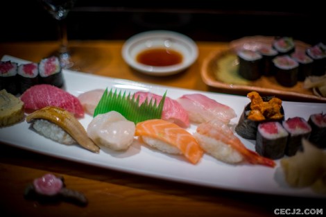 Situé dans une humble rue près de Porte Maillot et de l’excellent Shinano maintenant fermé, ce restaurant est tout simplement sublime. Laissez-vous tenter par de la méduse vinaigrée (oui cela existe au Japon!), des algues assaisonnées – Mozuku – ou bien de la dorade crue Tai. Bien entendu pour les moins téméraires, vous pouvez déguster classique Sushi et Tempura sans risque. Le choix des poissons est vraiment impressionnant et il y a souvent du thon gras – O-Toro. Vous pourrez d’ailleurs remarquer la belle feuille de Shiso sur les sashimi et de fines tranches d’omelette en décoration. Superbe ! Service rapide pour le déjeuner. Le soir, je vous conseille la rascasse grillée – Kasago-Shioyaki. D’ailleurs les clients ne s’y trompent pas et vous verrez de nombreux hommes d’affaires de passage à Paris venir y manger. La patronne, aimable, m’a même appris l’étymologie du mot Akagai, espèce de coquille St Jacques japonaise ; « aka » signifiant « rouge » et « gai », « coquille » !