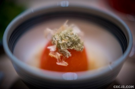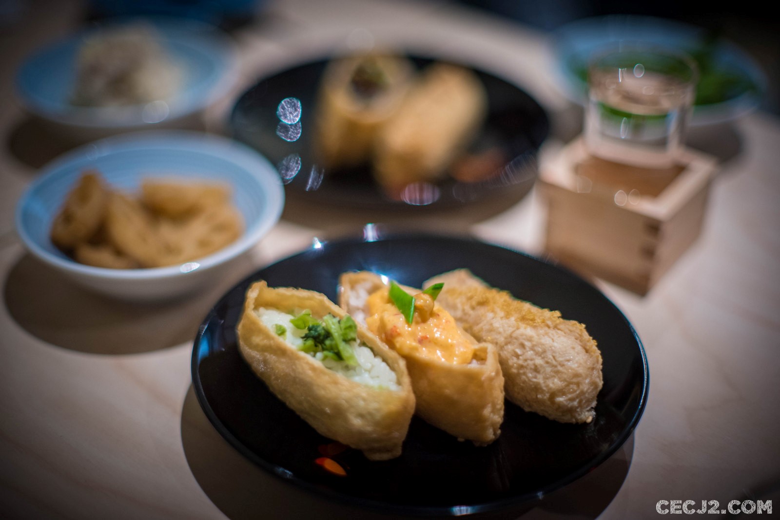 Celles et ceux qui sont allés à Kyoto se souviennent certainement de temple aux milles Tori, ses portails rouges qui surplombent votre chemin dans la montagne. Et cet endroit est dédié au Dieu des moissons du riz, symbolisé par un renard, Inari 稲荷神. C’est pourquoi, ses bouchées de riz enrobée d’une peau de tofu sont appelées Inari-Zushi car elles ressemblent à des renards avec leurs petites oreilles. Aujourd’hui je vous emmène découvrir cette nouvelle adresse ouverte il y a deux semaines, Oinari, tenu par un chef Japonais, Yukinobu Iwasa, fraichement arrivé de Tokyo. Ici la spécialité est déclinée en plusieurs parfums : algues Nori, agrume Yuzu, mousse de crabe Kani, sésame ou moutarde Wasabi. Ce qui m’a tout de suite étonné c’est la finesse de la pâte, bien souvent épaisse et sans saveurs. Très parfumée, la pâte de soja s’associe avec le riz parfaitement cuit. Un délice de simplicité. Le soir, Oinari est aussi une Izakaya, c’est-à-dire que vous pourrez déguster de petits plats comme de la Potato Salada, des Takoyaki (les boulettes de poulpes d’Osaka), des racines de lotus façon Kinpira (sauté et bouilli), un étonnante Oden Tomoto (une tomate pelée avec de l’algue Kombu et de la bonite séchée), des beignets de camembert ou un Tamago Kinchaku, un œuf mollet dans du tofu frit, tout en dégustant un excellent Saké. Une toute petite adresse où il faudra venir tôt ou réserver.