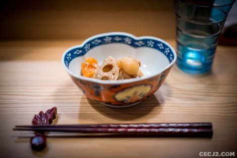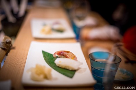 Sushi K est la nouvelle adresse su chef Keisuke Matsushima qui a fait venir son ami d’enfance, chef sushi, directement de Fukuoka. Le Sud du Japon étant très chaud, la particularité des sushi c’est d’être épicés : piment bien entendu, mais aussi Yuzu ou bien sel de mer, pour permettre au corps de reconstituer ses réserves d’eau. Et cette petite spécificité change tout. Saumon, thon de Méditerranée mariné au Miso, coquille Saint Jacques, maquereau, poulpe mariné et même du caviar d’Aquitaine défilent sous vos yeux durant 1h30. Le Chawanmushi, le flan à la Japonaise, était présenté dans un œuf doré qui m’a fait pensé au vif d’or dans Harry Potter. La décoration est on ne peut plus zen, un comptoir, sept places et le chef au centre. Je tiens d’ailleurs à remercier l’accueil de Takao Kobushi et son acolyte, pour sa générosité et la gentillesse avec laquelle ils sont répondu à toutes mes questions. Mention spéciale aussi aux autres invités qui nous ont fait passer un grand moment de convivialité. Très bien.
