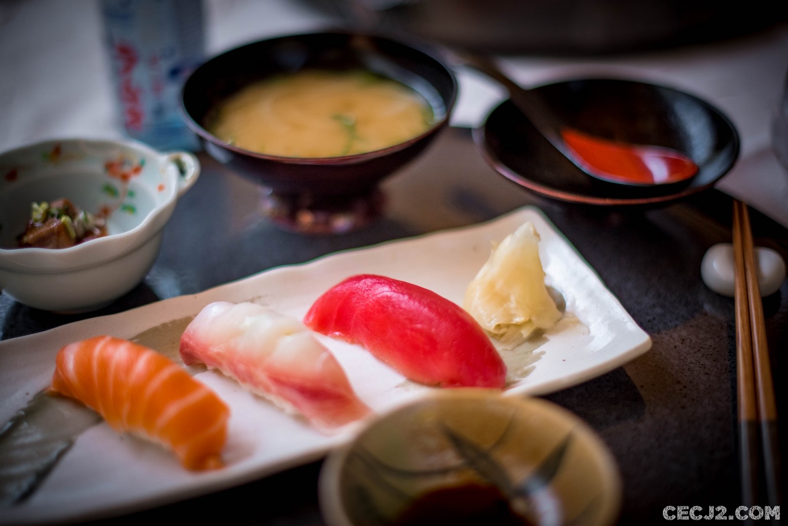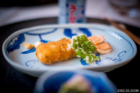 Je trouve qu’il y a beaucoup de similitudes entre Aix-en-Provence et Paris. Les gens y sont parfois arrogants, souvent bien habillés et plus riche que dans les villes alentours. C’est pourquoi, il n’y a rien de surprenant de trouver une maison avec un joli jardin Japonais, ses carpes Koï et ses érables, en plein centre ville. Le couple d’une petite soixantaine d’année est originaire d’Osaka et l’accueil de Madame est plus que déroutant. Il n’y a qu’à vois les critiques sur internet pour forger votre propre avis et je ne rentrerais pas dans la polémique. Un peu comme Isami à Paris ou Sushi Tetsu, il n’est pas rare en Europe de mal se faire recevoir dans un restaurant. C’est dommage car la cuisine y est vraiment bonne. Seuls les Okokmiyaki m’ont déçu car il n’y avait pas de chou dedans. Étrange. Par contre, les sushi sont délicieux (même si le chef a été un peu trop généreux avec un morceau de poisson un peu gros, mais recouvrant parfaitement le riz chaud et Al Dente), les Tempura de très haute facture, que ce soit les crevettes, les légumes Bio de saison ou la langoustine, ou le très bon poulet Teriyaki. Pourtant le plat que je n’oublierais jamais était le dessert : quelle maîtrise ! Imaginez un mousse de mascarpone façon Tiramisu au thé vert mais recouvert de minuscules glaçons, un Granita, et accompagné de pamplemousse. Je suis resté scotché. Et ceux qui me lisent régulièrement savent que je n’aime pas spécialement les desserts en particulier ceux du pays du Soleil Levant. La patronne m’a aussi présenter à son magnifique chien de la race Akita. Une adresse pleines de surprises, bonnes et moins bonnes…