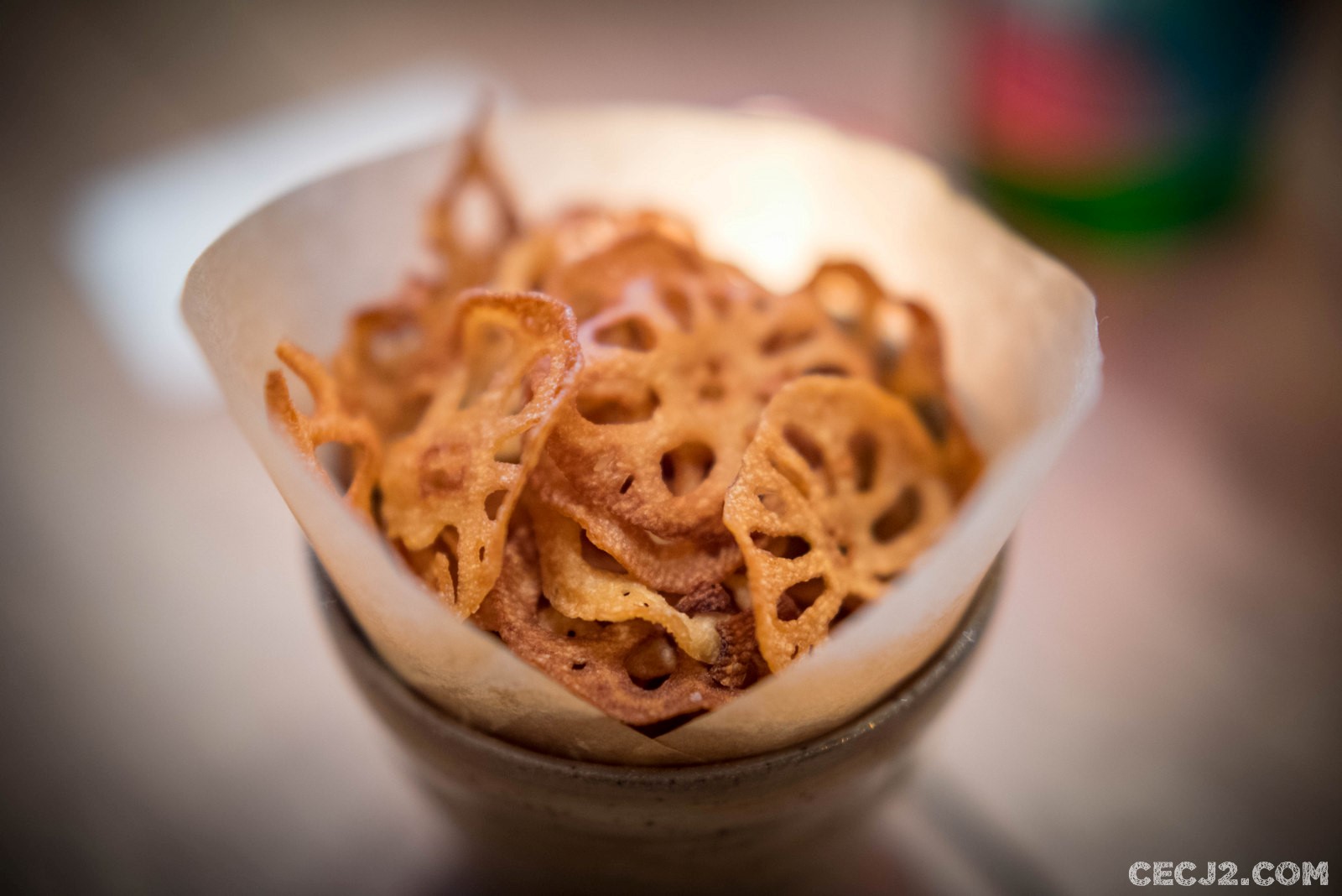 L’ancien chef de Shiki a décidé d’ouvrir son propre restaurant, SUMiBi KAZ. Ornée de peintures dignes d’un générique moderne de Nausicaa, la carte propose de nombreuses spécialités de tapas. Potato Salada, croquettes de potimarrons, chips de lotus.. En plat, les viandes et crustacés sont cuites au feu de bois ce qui leur donne ce petit goût unique : échine de porc, poulet haché, anguille grillée ou bien gambas, tout est très bon. Il y avait aussi des couteaux avec des pleurotes Eryngii que je n’ai pas pu essayer. Mais ce sont les crabes en mues sauce vinaigre noir qui ont retenus mon attention : un peu trop poissoneux, il n’égalent pas ceux de Fleur de Mai mais sont quand même bien réussis. Pour conclure, j’ai bien aimé cette nouvelle adresse, très prometteuse, puisque le chef annonce très clairement qu’il s’agit d’une préouverture, il cherche encore ses marques.