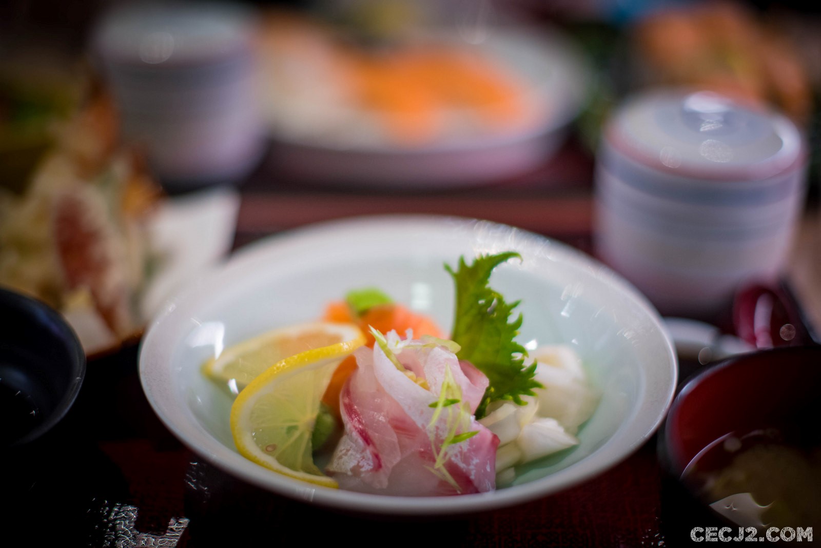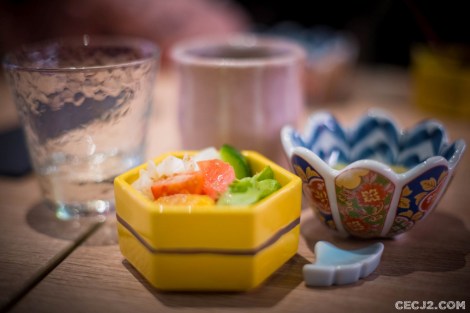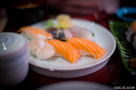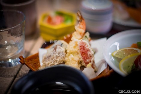 Qu’il m’a été difficile de déjeuner chez Izumi ! Une fois ils étaient en congés annuels, une autre fois nous avons eu du retard au déjeuner… Mais cette fois fut la bonne et je ne regrette pas d’y être allé. Alors bien sûr c’est moins luxueux que chez Yamato, mais c’est bien meilleur. Tous les produits sont bios ou label rouge et il y a même un menu enfant. La carte propose une salade à la sauce sésame, des Tsukemono (légumes marinés), un Mushimono (étuvée de potiron ce jour là), une soupe Miso et un Chawanmushi (un flanc à la bonite, champignon et persil). En plats principaux, vous aurez le choix entre Sushi, Sashimi, California roll, Tempura, Karaage, Yakiniku (bœuf Argentin poêlé avec de l’ail et du gingembre) et Gyoza. A noter la présence d’une formule végétarienne : Shoujin Teishoku avec un Agedashi (tofu frit), une salade (endive, tomates, concombre, carotte, tofu et cacahuète), un Nimono Wan (des légumes mijotés comme de l’artichaut, des navet, du Wakame ou du Yuzu, dans du saké et de la sauce soja) et des California à l’avocat. Le soir il y a aussi des Takoyaki (les fameuses boulettes au poulpe d’Osaka), un étonnant Sushi au foie gras et un Sukiyaki de Wagyu (d’Australie), une fondue de bœuf, légumes, œufs mollets et riz bio. Une très bonne adresse même s’il l’ont peut reprocher des quantités un peu légères pour un gros mangeur.