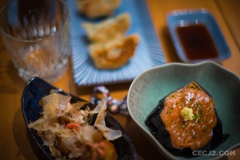 Situé dans une rue discrète, cette nouvelle adresse propose les grands classiques de la gastronomie Japonaise : Dengaku (aubergines frites au miso), gyoza aux crevettes, Takoyaki (boulette à base de poulpe, spécialité d’Osaka), de croustillants Tempura (légumes et crevettes), Shakeyaki (saumon grillé), Unadon (anguille sauce kabayaki au sancho, le poivre Nippon) ou le plus original Kamoyaki (canard grillé sauce teriyaki). Une très bonne adresse qui demande juste à glisser un petit grain de folie.