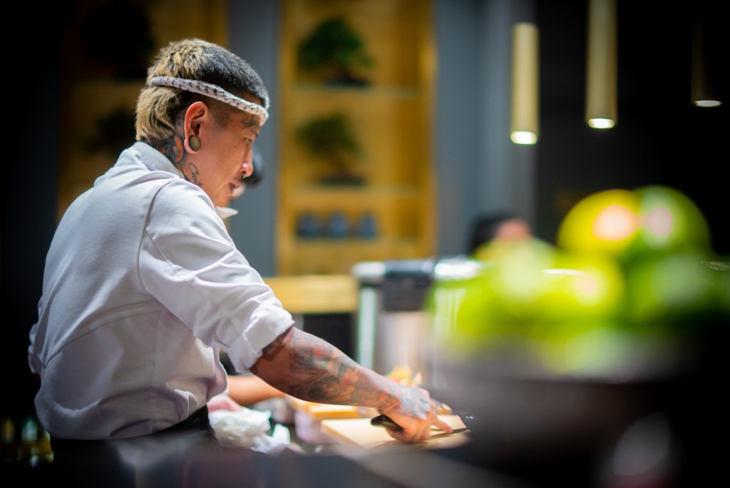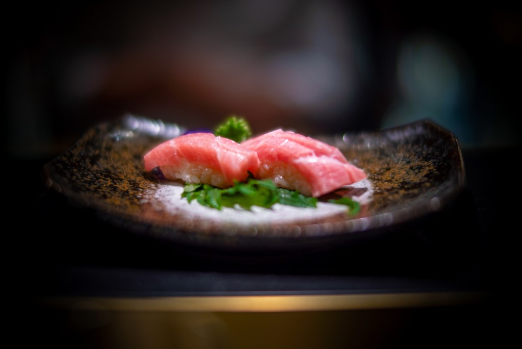 Yakuza by Olivier est certainement la meilleure adresse de sushi, dans la catégorie « moderne ». Celles et ceux qui me lisent le savent, j’adore la tradition, en particulier pour ces délicieux morceaux de riz recouvert de poisson cru. D’ailleurs, nous allons parler d’un type particulier de maki, le gunkan 軍艦巻 qui tirerait le nom des cuirassées de guerre. Ici c’est une débauche de saveurs et d’umami : à la truffe fraîche avec un œuf de caille, au saumon et au piment padrón (spécialité de la Galice) ou bien encore au poisson blanc, gingembre et citron vert. Quant au sashimi, il vous sera servi dans un nuage très impressionnant d’azote liquide. Seul chose que je n’ai pas aimé, c’est l’utilisation du persil qui à man goût était à la mode dans les années 90. Mais ce n’est qu’un petit détail compensé par le shichimi tōgarashi 七味唐辛子 sur le citron vert pour la salade de calamars frits, qui dénote le souci du détail et l’expérience du chef. Une excellente adresse pour laquelle je reviendrai certainement.