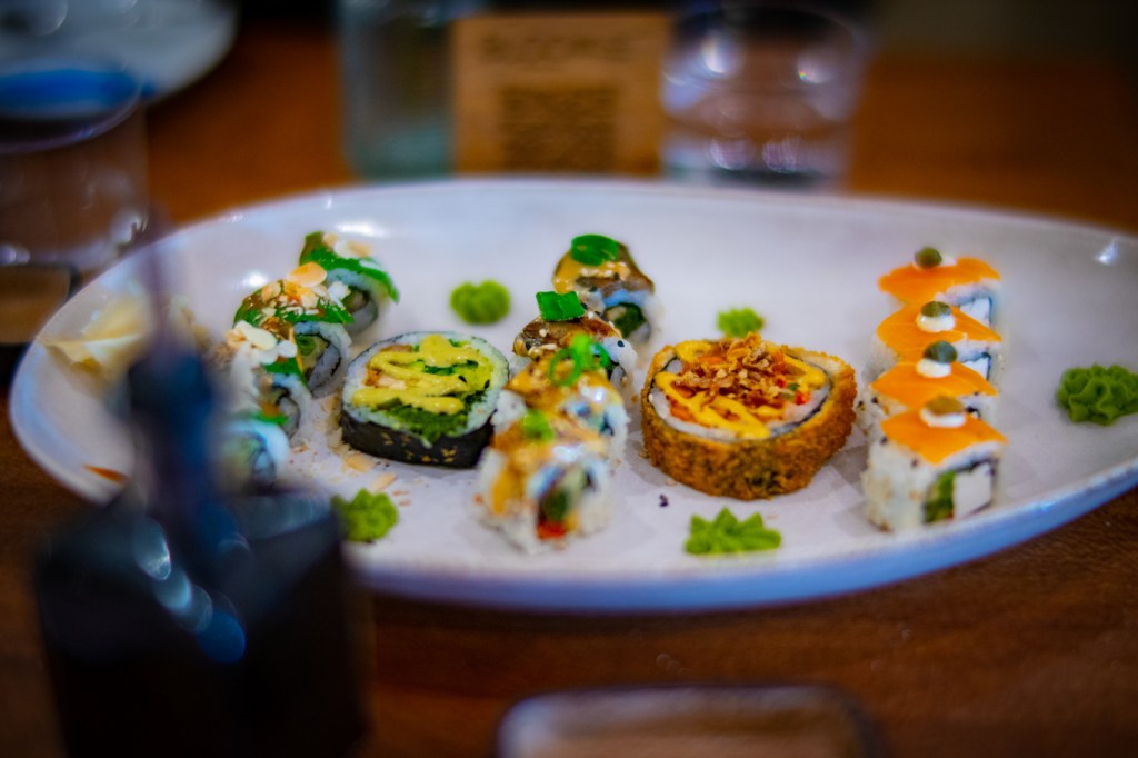 Malgré un service chaotique, j’ai été surpris par la qualité visuelle des maki végétaux de Bloom. C’est beau et pour se douter que le saumon est en réalité du konjac, c’est impossible ! Cependant, j’ai été un peu déçu par rapport au goût des vrai maki : celui au shiso était délicieux mais j’ai trouvé ceux à l’aubergine un peu trop salé et le Philadelphia trop présent dans le saumon, justement. Je pense que la mécanique du sushi végétal est bien mené pour un résultat que je dirais très éloigné de la véritable cuisine Nippone.
