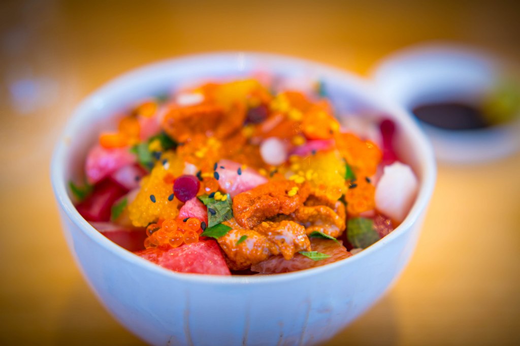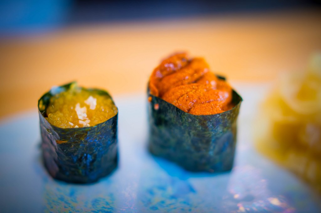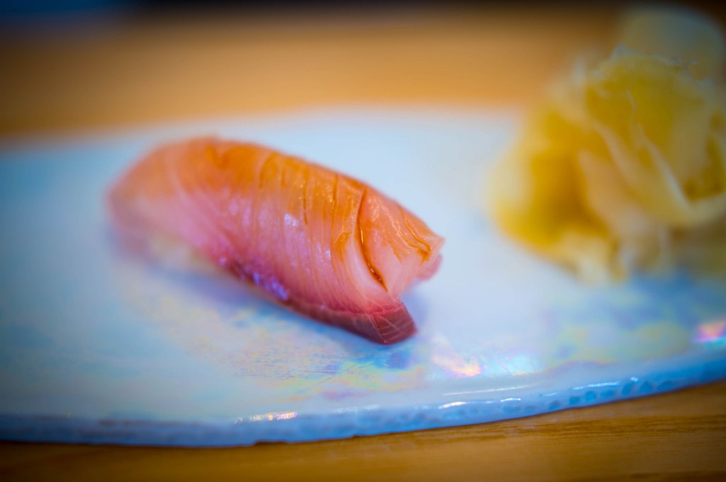 L’Abysse est un peu comme un serpent de mer à mes yeux : détesté par certains, adulés par d’autres, je me devais d’y aller pour me forger mon propre avis. Et j’ai été déçu. Le chef Yasunari Okazaki st au top, ce n’est pas le problème. C’est cette structure autour de lui qui le gâche. C’est vaniteux, bancal et faux. C’est comme mettre un moteur de Ferrari dans une deux chevaux, à quoi ça sert ? Autant j’ai adoré Prunier de Yannick Aléno, autant ce restaurant m’a laissé de marbre. Les entrées et les desserts sont « dégueulasses » et je pèse mes mots : une glace aux champignons de Paris, le takoyaki avec son bouillon ou ce poisson mariné au saké. Les sushi de bar et de sériole sont très bons, les gunkan d’œufs de brochets et d’oursin délicieux, le chirashi top. Mais il est gâché par la serveuse qui vient vous le bouillir, pour soit-disant apporter une « nouveauté »… Tout est comme ça. J’ai l’impression qu’il faut en mettre plein la vue avec ce « tempura » de feuille de shiso à la neige carbonique : il faut impressionner le chaland. En fait je demande quel a été l’intérêt de mettre un chef Japonais au milieu de cette foire d’empoigne !