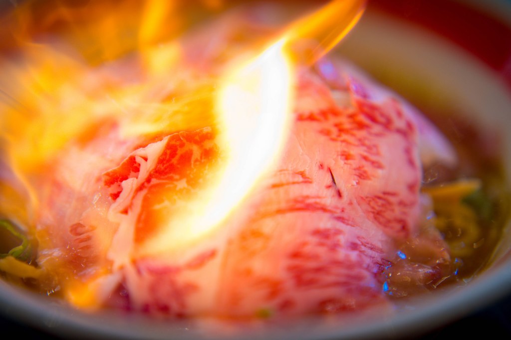 Mecha めっちゃ en Japonais ressemble au mot mekaメカ, ces terribles robots qui peuplent les animes du pays du soleil levant, mais ici ce n’est pas du tout le sens du mot ! Utilisé par la jeunesse Tokyoïte, ce mot un peu argotique signifie « déraisonnablement » ou « absurdement ». Et le mot Uma est l’abréviation de Umai うまい qui signifie « délicieux ». Donc le nom de la chaîne de trois restaurants en Provence pourrait se traduire par »absurdement délicieux » ! Et nous devons ce concept à Kohei Ohata, ex-Kitchen Galerie à Paris. Je dois vous avouer que j’étais très sceptique avant d’y aller… Et pourtant, je n’ai pas été déçu, j’ai même trouvé ça excellent. J’ai pris le plat le plus cher de la carte (29€), la wagyu ramen, version miso épicé. Le spectacle est assuré par la torche qui grille les quatre fines tranches de grade A5. C’est très bon et simple. J’ai aussi slurper le bouillon shoyo avec cha-su accompagné d’un limonade ramuné. Il y aussi une épicerie en face avec des produits de qualité. Si vous passez par Avignon, Arles ou Saint Remy de Provence, vous savez où aller !