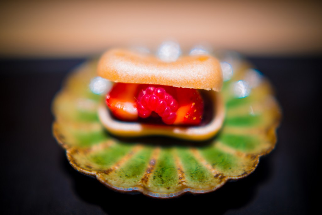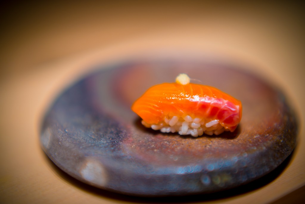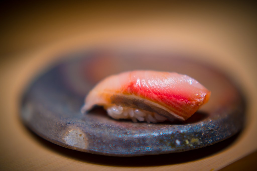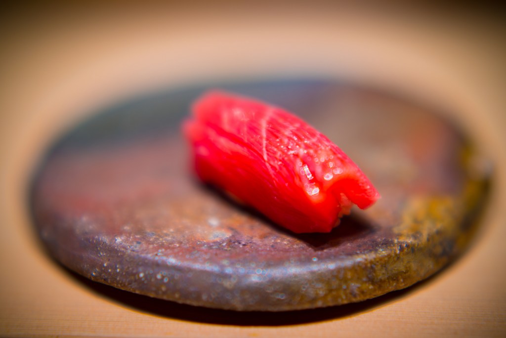 Original, tendre, acidulé, créatif. Les mots me manquent pour décrire certainement les meilleurs sushi Parisiens en 2025. Ici pas de poudre aux yeux avec du o-toro et du caviar, juste des produits simple et maturés avec beaucoup de soins. Le chef Hanada peut enfin nous montrer l’étendue de ses talents. Le repas commence par un goma-dofu (du tofu au sésame grillé), de la chair de tourteau au vinaigre tosazu et un sashimi de barbue. Ensuite, un très étonnant chawanmushi au caviar et émulsion de jaune d’œuf, et une excellent quenelle de crevette oxyblue. Et c’est au tour d’un florilège de sushi avec des poissons maturé une à deux semaines, tendre à souhait : encornet (la spécialité du chef selon moi), barbue, langoustine, pageot, chinchard, thon gras, thon rouge, truite (certainement le plus original et mon préféré), sériole et thon mi-gras. Certains thons viennent de Saint Jean de Luze et d’autres d’Espagne. Avant les desserts, nous avons dégusté une soupe akadashi avec une bouillon de langoustine et de miso d’orge et des maki de thon rouge mi-gras et gras avec des tiges de wasabi. Pour terminer, une très étonnantes glace de riz et huile d’olive, et un monaka (azuki, framboise et gelée de citron). Un repas parfait pour 350€ par personne qui méritent largement deux étoiles au fameux guide rouge.