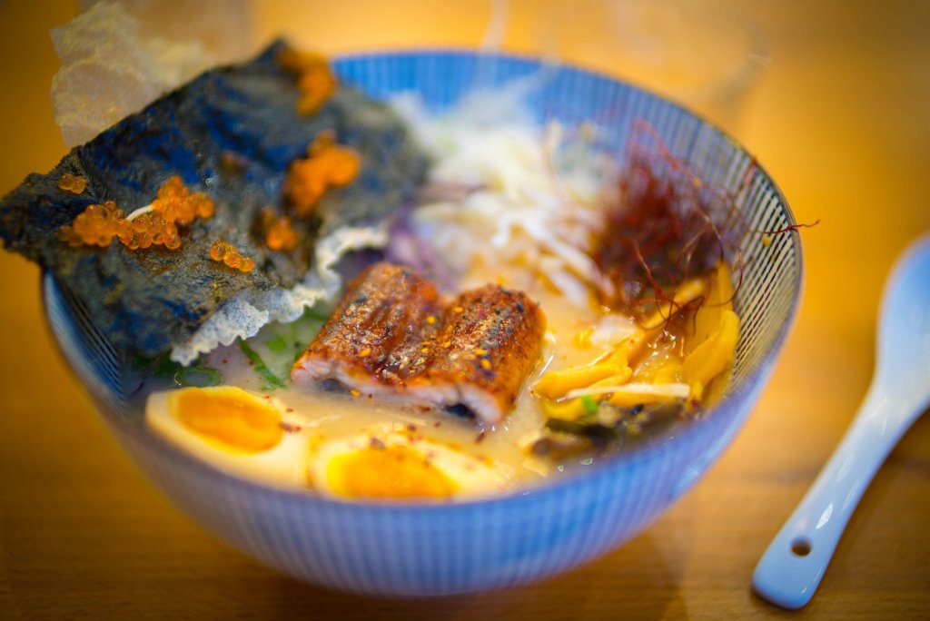 Trop moderne ? Trop expérimental pour moi ? J’ai pris le plat signature Ukiyo à base de sardines et de poulet très original et bien réussi. Les nouilles étaient un peu trop cuites mais c’est le morceau d’anguille que je n’ai pas aimé : trop moelleux. Le mélange terre-mer était bien maîtrisé mais la surcouche sucrée-salée m’a un peu déçu. Service au top et décoration très amusante surtout aux toilettes.